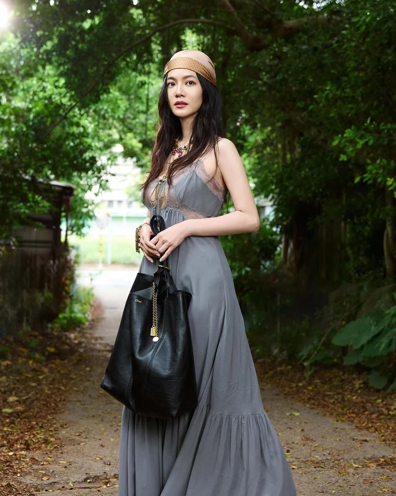 剛迎接新生命邁向人生新旅程的曾之喬,近期也選用Chloé 2025早春系列的灰色蕾絲長洋裝,混搭Chloé Kick高筒球鞋與印花頭巾展現充滿個性的自我風格,包款上也選擇Spin流浪包呼應整體波西米亞的風格主調,彷彿踏上一場浪漫優雅的隨興旅行,陽光灑落,展現旅途中無所畏懼的自信與魅力。
