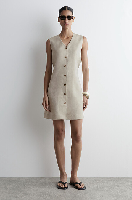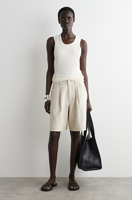 COS剪裁系列以簡潔的線條和低調的簡約風格為特色。這款針織棉質背心以濃鬱的橄欖綠色調,圓領設計,下擺飾有 V 形細節的設計吸引編輯目光,夏季可以輕鬆搭配牛仔褲或長褲,好看又有質感。
