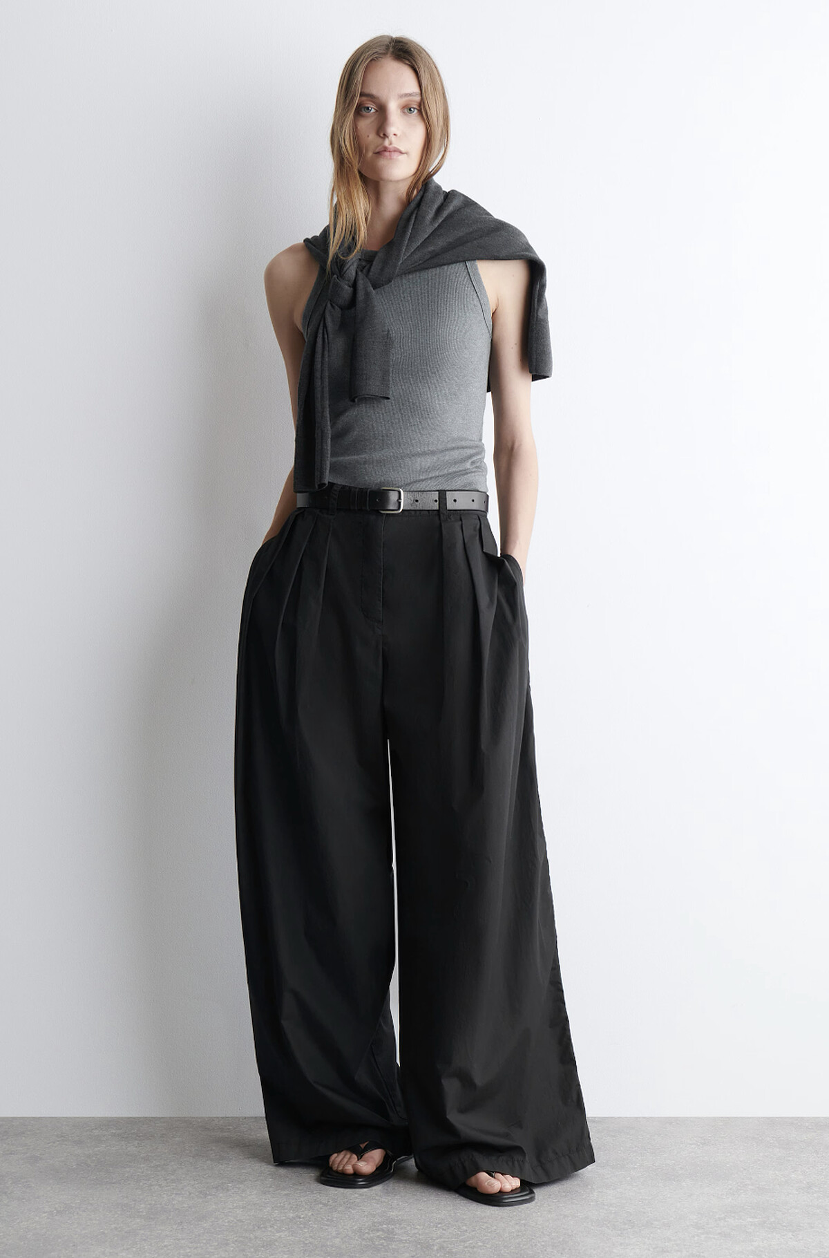 3.COS褶飾棉質寬褲