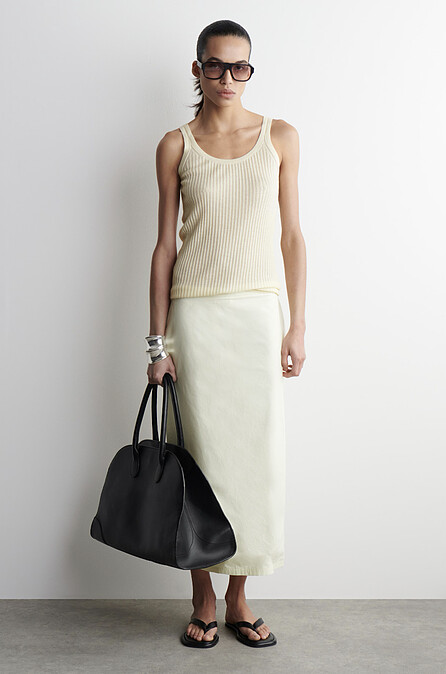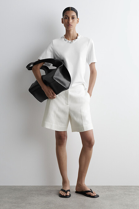 COS很會製造話題包,2025春夏這顆大包簡約有型,可以說是The Row的平替版,不僅結構圓潤、有份量感,能撐起一套簡約西裝,也能替洋裝加分成為造型主角,價格也相較親民。