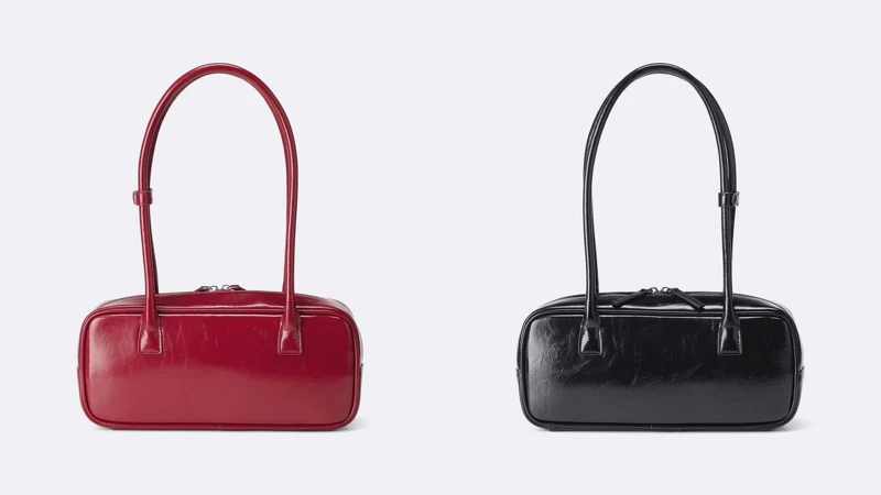 GU新一季的單品中出現了近年許多精品品牌也紛紛推出的「法棍包」,這款包型以橫向長型的包身設計為主,也因為形狀類似法國法棍麵包而得其名,本次GU共推出三種色系,其中紅色與黑色包款以光面的皮革材質為主,包身較硬挺,看起來簡約俐落的造型感。