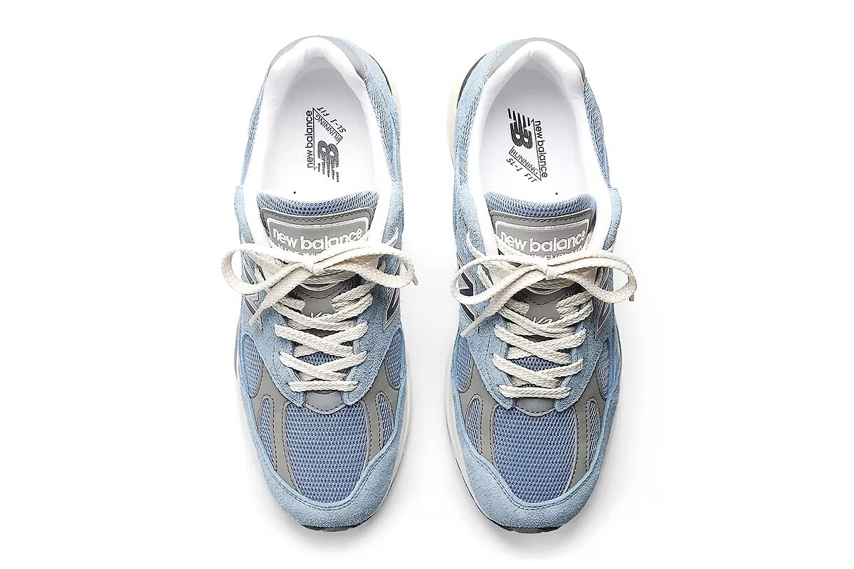 New Balance 英製 991v2 Made in UK 也是鞋頭們鞋櫃中的必收款式,最近也釋出了新色天藍色「Celestial Blue」的發售訊息,鞋款以精緻的透氣網眼搭配高質感麂皮與灰色皮革打造,由英國鞋廠製作的品質保證,除了緩震技術ENCAP 緩震與半透明 ABZORB SBS ,更搭配了與時俱進的 FuelCell 製鞋科技,能提供穿著者舒適的彈跳回饋,而奶油色鞋帶與中底也是球鞋品味收藏家留意的收藏重點,此鞋預計在 6 月 19 日登場,有興趣的鞋迷還請多加關注~