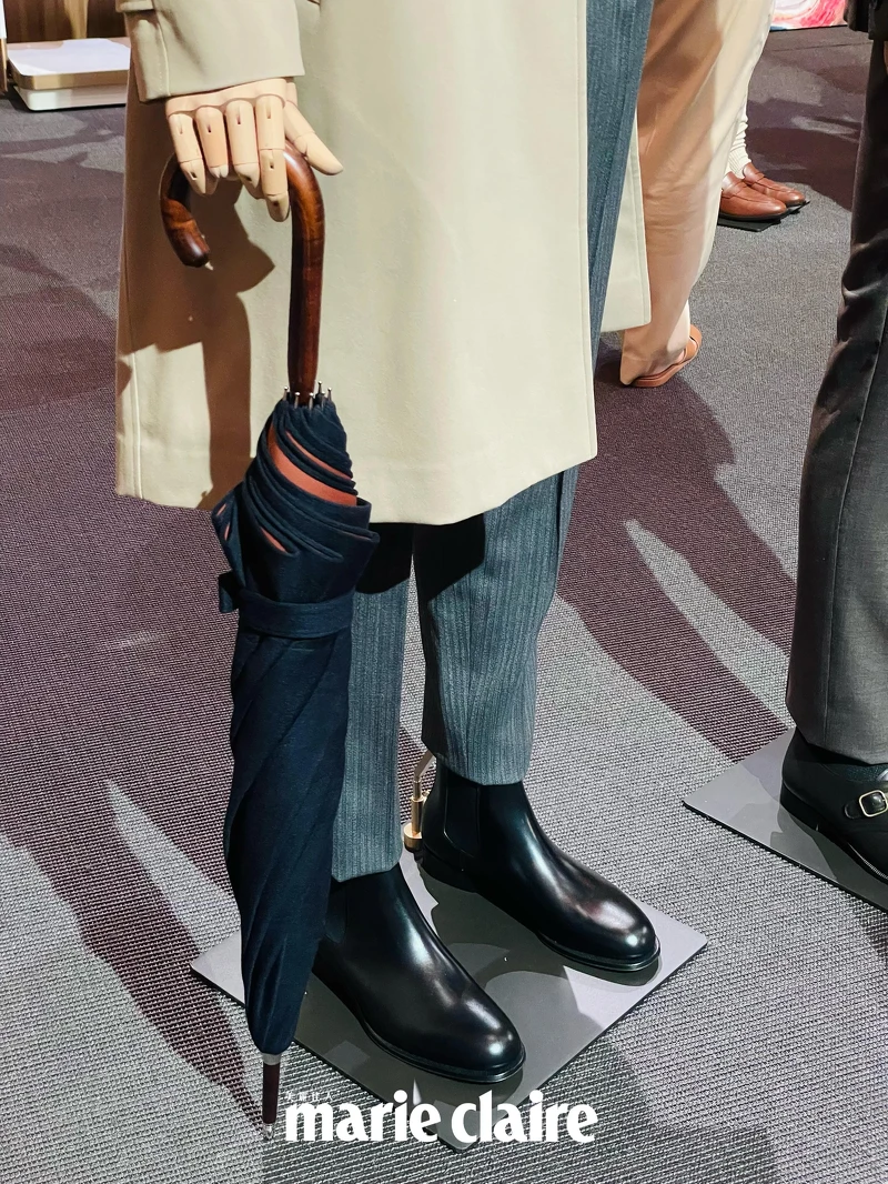 隱藏在男士的配件區裡,有一把特別的雨傘!厚實的份量感一看就知道不簡單,原來它是用Cashmere 羊毛布料製成的雨傘,柔軟觸感令人驚艷,也顛覆了我們對於雨天日常的想像。