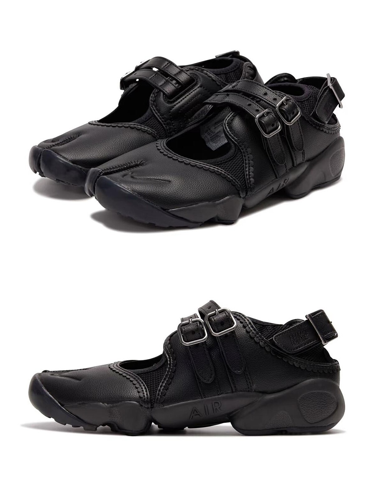 Nike從1996年首度推出Air Rift以來,就是分趾鞋的經典代表,這款全新「Buckle Strap」版本,不僅延續Tabi分趾設計,運用雙層皮帶扣環取代原先的魔鬼氈,原先後跟處的調節式魔鬼氈也換為皮帶扣,雖然是低調的改變,卻能看出其中洋溢的暗黑哥德氣息,鞋面包邊處甚至帶上了浪漫的皮革滾邊,為街頭球鞋挹注優美的芭蕾風格。