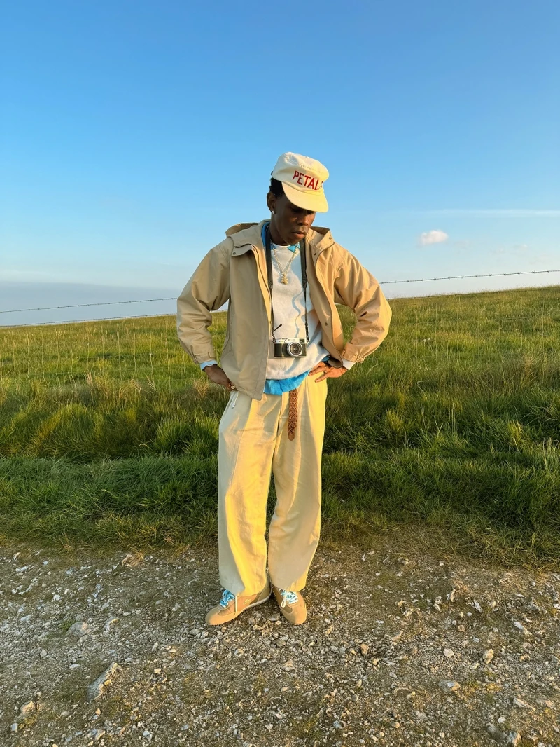 1908復古跑鞋的首個合作對象就找來美國創作歌手與時尚設計師Tyler, The Creator出手操刀。近年在音樂領域持續推出作品的Tyler,在時尚圈的曝光率不比音樂圈遜色,不僅同時擁有個人品牌GOLF le FLEUR*之外,各種合作聯名也能持續看到,2024年更是與好友、現任Louisv Vuitton男裝創意總監Pharrell Williams推出了路易威登的春季男裝膠囊系列,展現他融合街頭、復古與童趣的個人風格。