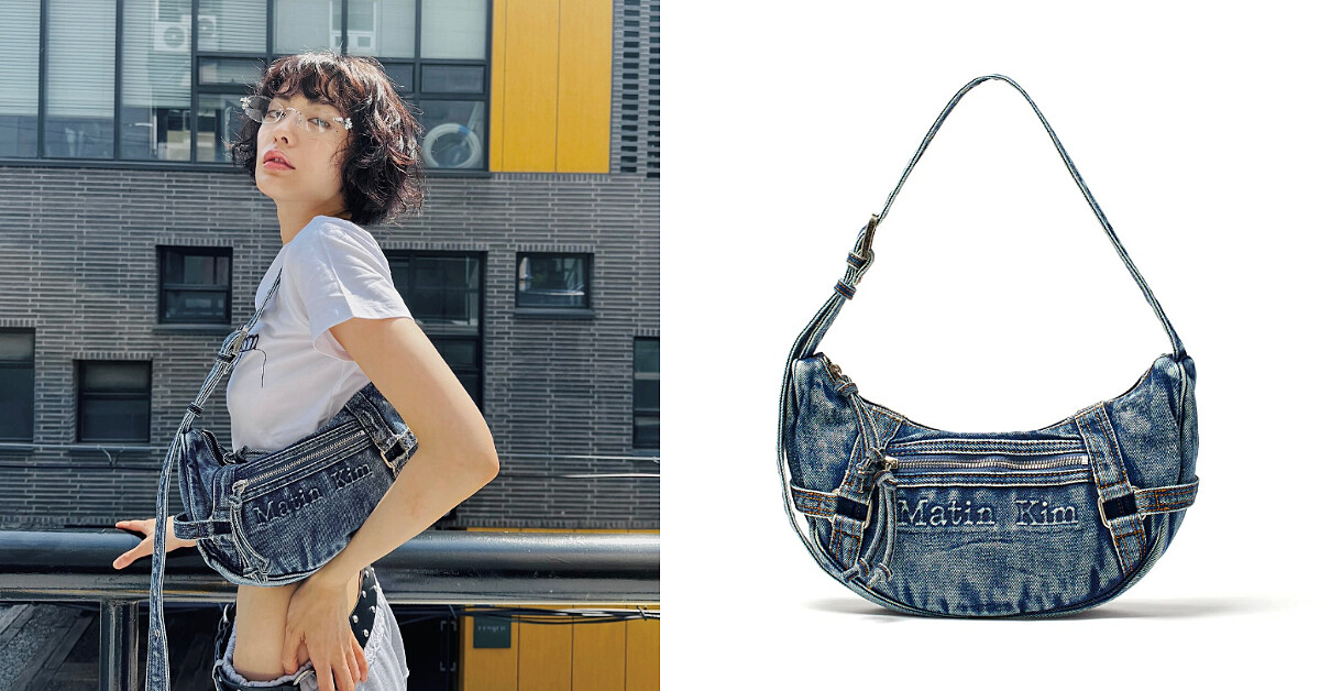 在韓國年輕世代間很受歡迎的Matin Kim近年也來台灣開設專門店,韓星Nana同款的水洗單寧半月包一發出照片就詢問度超高,鬆軟的包身輕巧又便利,結合洗舊感的單寧面料和白T相輔相成,還可以放入長夾、行動電源和化妝包等隨身小物,絕對是今夏必收IT Bag。
