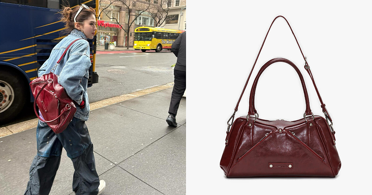 長相甜美的韓韶禧私底下喜歡個性街頭感的穿搭,前陣子在她的個人社群出鏡的這款機車包來自韓國品牌sunburnproject,流暢的輪廓設計配上自然褶皺感的皮革,呈現滿滿復古風情,而韓韶禧選的勃根地酒紅色和牛仔單品混搭,既能畫龍點睛,又不會太突兀。