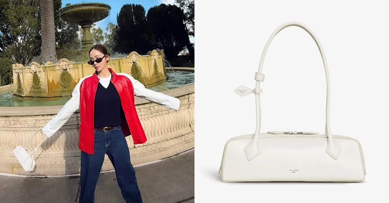 Jessica酷愛各種高級簡約設計的單品,法國高級時裝品牌ALAÏA正是她的心頭好,這款多次出現在她社群版面上的法棍包LE TECKEL MEDIUM BAG以東西向的包身和多種色系選擇而聞名,象牙白色替休閒穿搭注入優雅氛圍,平常上班穿搭也很適合,喜愛極簡鬆弛感穿搭的妳不妨可以入手一款心儀的顏色。