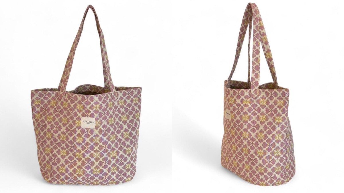 來自西班牙的包袋品牌De La Mur成立於2015年,是一個以家族成員為主的企業,致力於使用西班牙當地的布料打造實用又時尚的日常包款,而宋慧喬選擇的是大尺寸的「Bolsa Grande Blat」托特包,肩背款式的包身上飾有粉紅色和芥末黃的幾何印花,很有可能是在當地購入的包款,官網上售價是台幣896元。