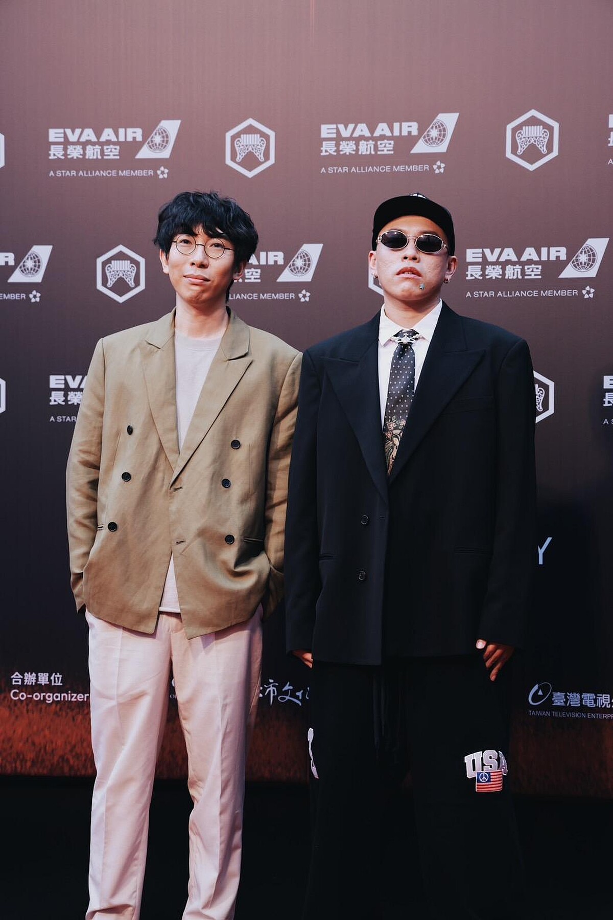 分別入圍最佳編曲人、最佳單曲製作人的張少瑜、海大富,一齊走上紅毯,張少瑜簡約的卡其色西裝穿出自然休閒的氛圍,海大富則完全是截然不同的風格,他把西裝融入街頭運動風,下巴上的星星痘痘貼意外搶眼!