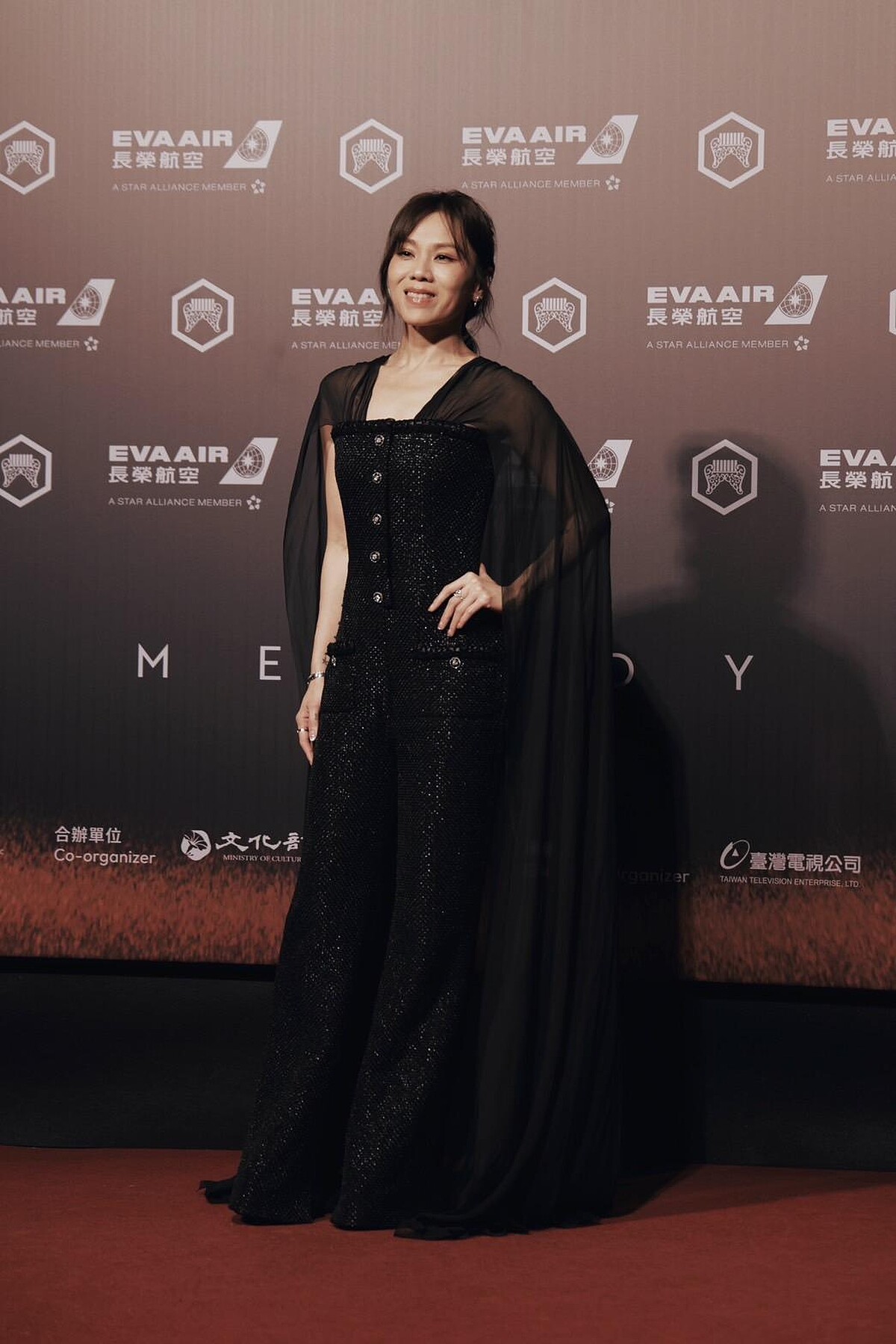 蔡健雅今晚以Chanel知性優雅的黑色斜紋軟呢連身褲裝踏上紅毯,並有Chanel高級珠寶系列增添氣場,透視烏干紗披肩更是點睛之筆,與蔡健雅的氣質特別匹配。