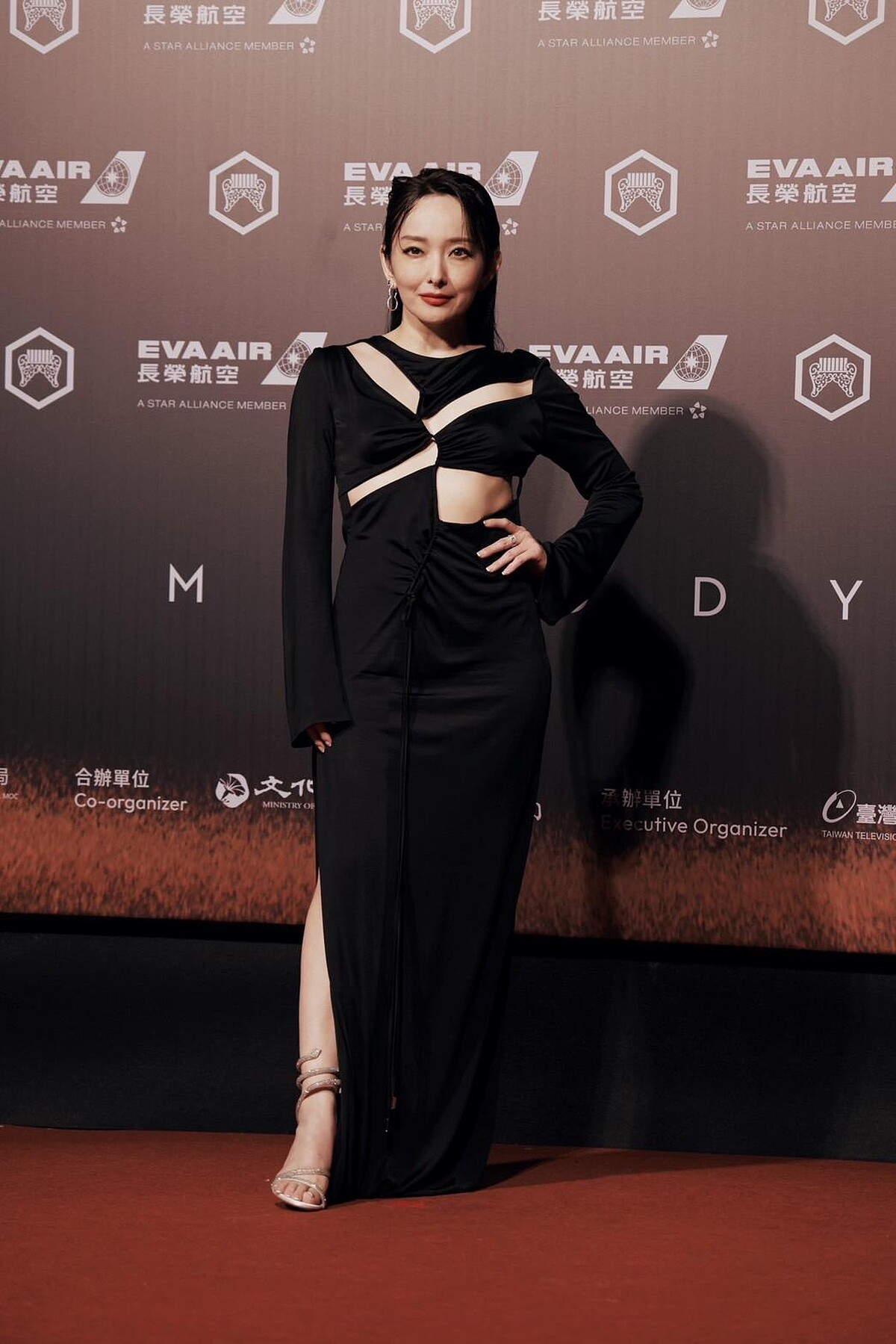 千田愛紗今晚真的很美!她身著由 LinLi Boutique 引進的英國晚裝品牌 Galvan Vertebrae系列長禮服,以筆直柱型剪裁結合交錯的鏤空,將身形線條完美呈現,身上佩戴則是Qeelin珠寶點綴。