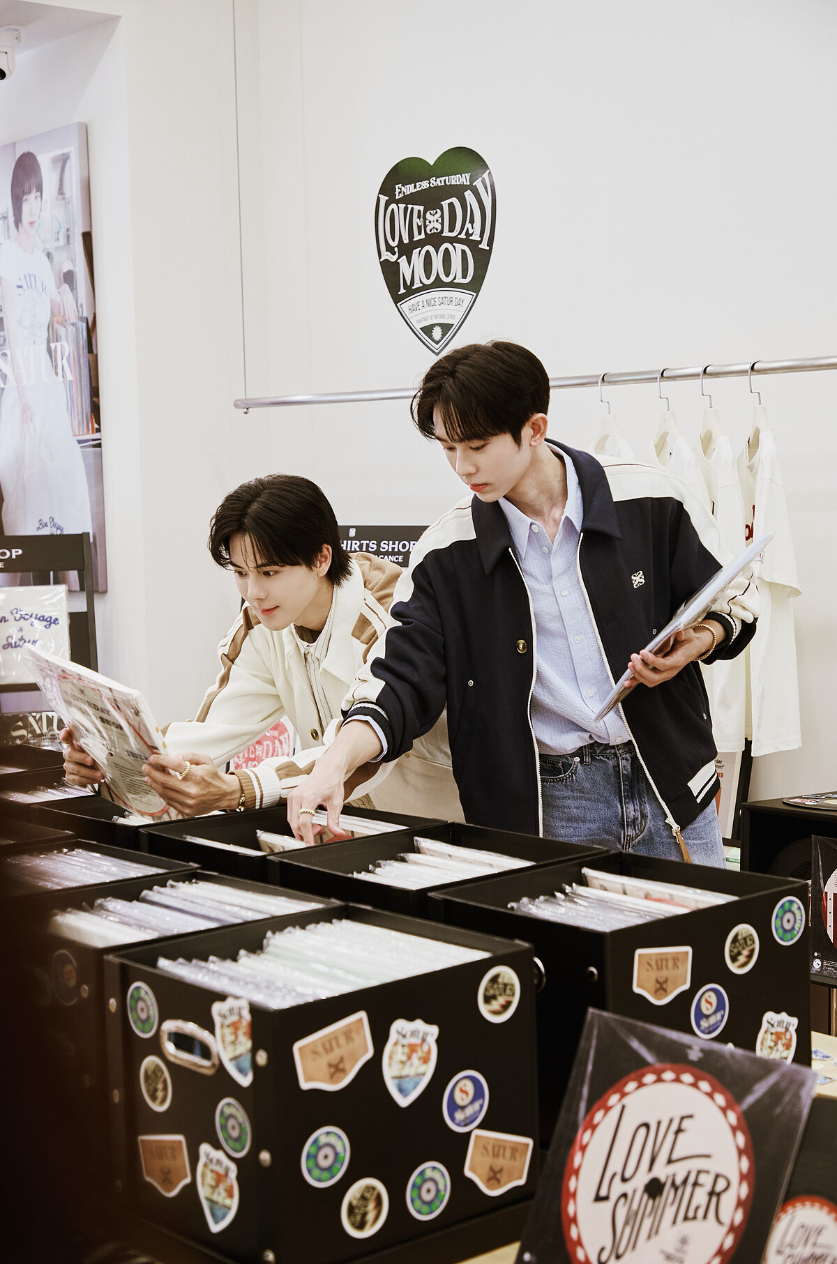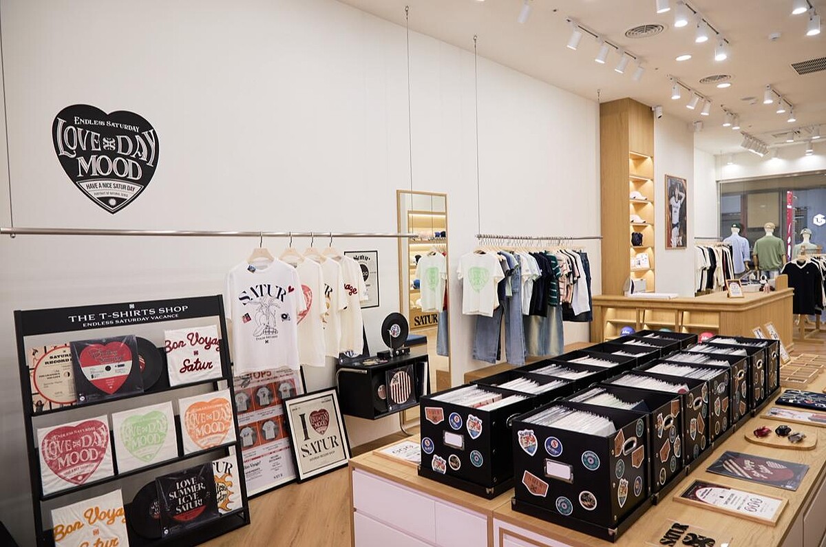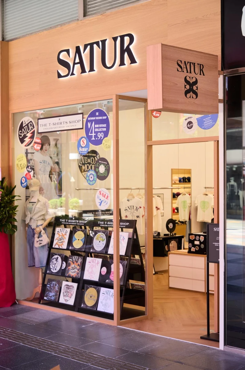 SATUR信義威秀店以「黑膠唱片店」為概念打造,品牌最受歡迎的T恤系列化為一張張黑膠唱片的模樣,陳列於店中給大家挑選,逛起來特別有趣。目前黑膠唱片T恤系列推出7折優惠,且開幕首週每天會有隱藏限量10組包裝貼有特殊貼紙的T恤,將可享有再8折的優惠,有興趣的朋友記得來尋寶!