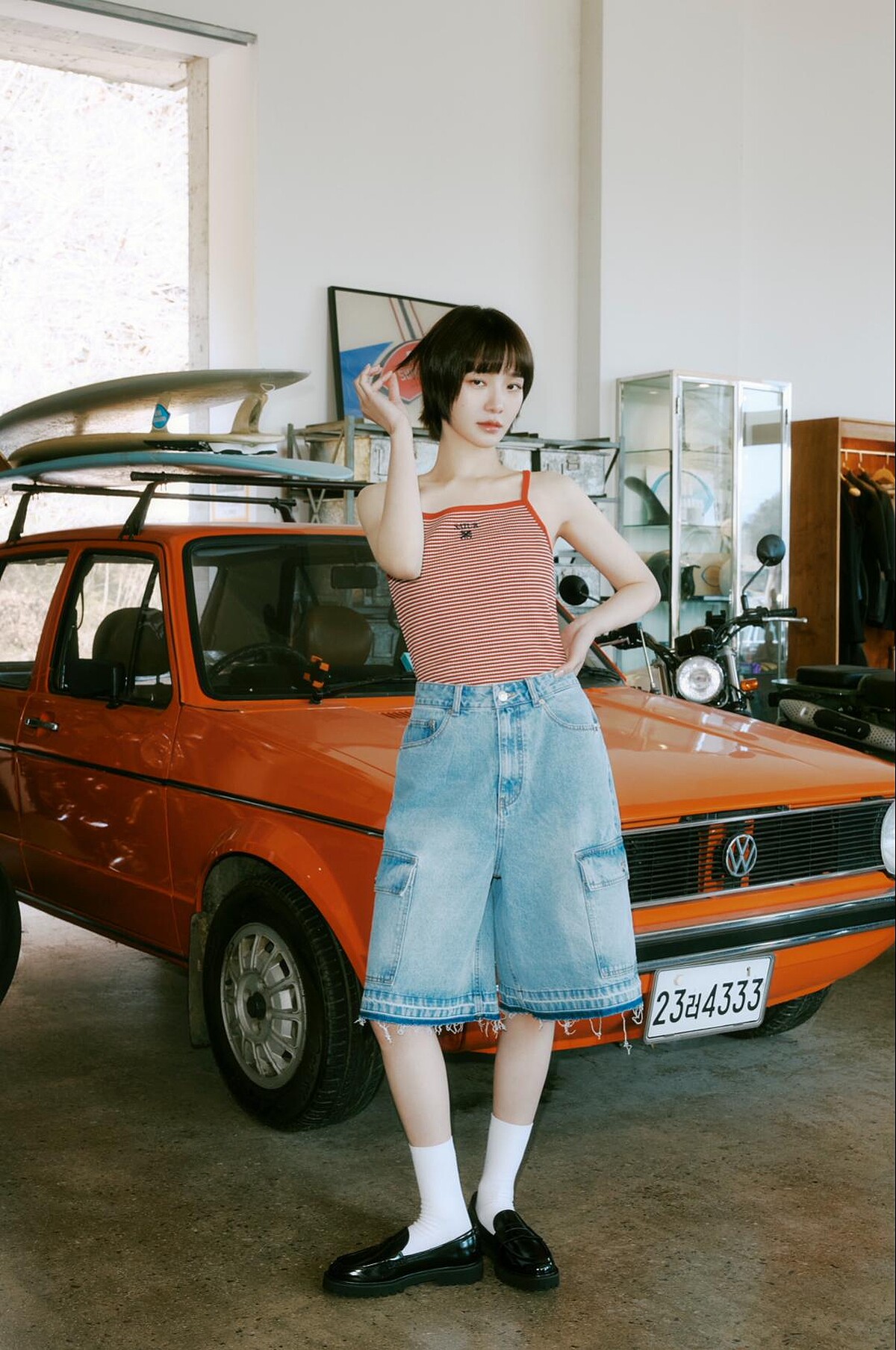 街頭酷女孩衣櫃中必備的百慕達牛仔褲,SATUR也祭出了新選擇。較為輕薄的丹寧材質適合台灣的夏季,水洗刷色和抽鬚褲腳處理,讓你一秒穿出帥帥的韓系小男孩風。