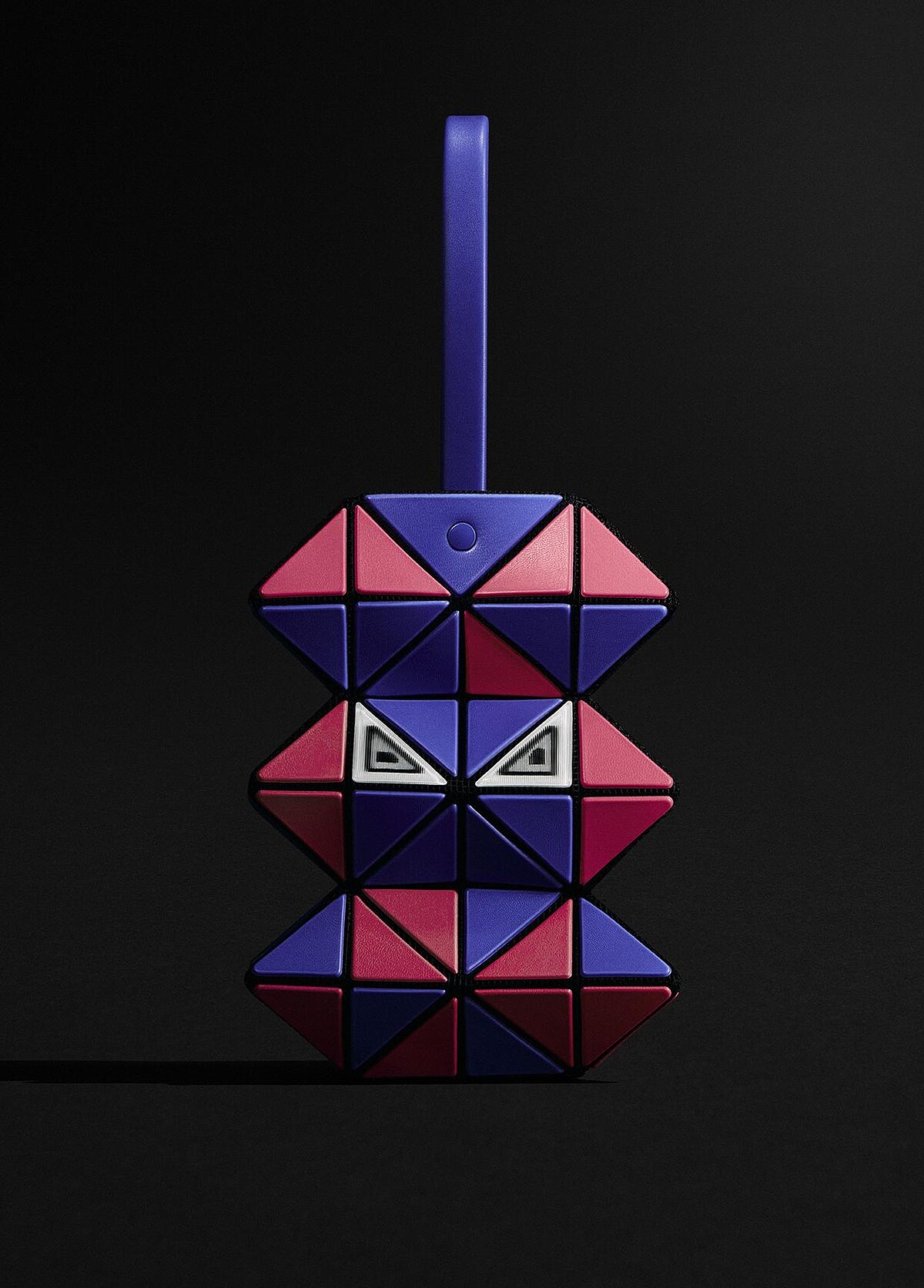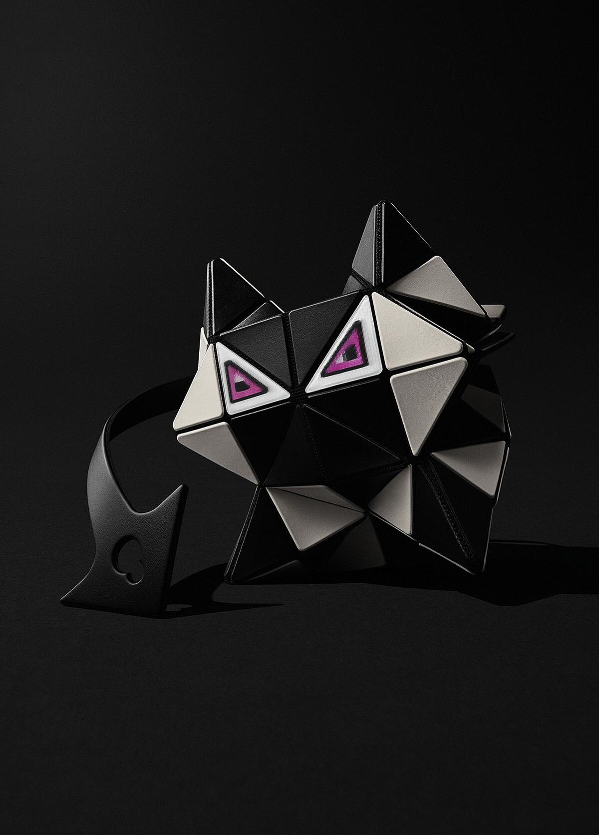 BAO BAO ISSEY MIYAKE 於 2025 秋冬系列中推出全新「MEOW」系列,靈感來自貓咪的輪廓與姿態。品牌延續標誌性的幾何三角片元素,透過結構性拼接呈現貓耳與尾巴的造型。其中,尾巴部位巧妙轉化為提把設計,融合造型與實用功能。系列另一項視覺焦點來自包款正面的「貓眼」設計,採用具變色效果的 3D 材質,隨角度改變展現不同光澤,營造出富有動態感的視覺體驗。