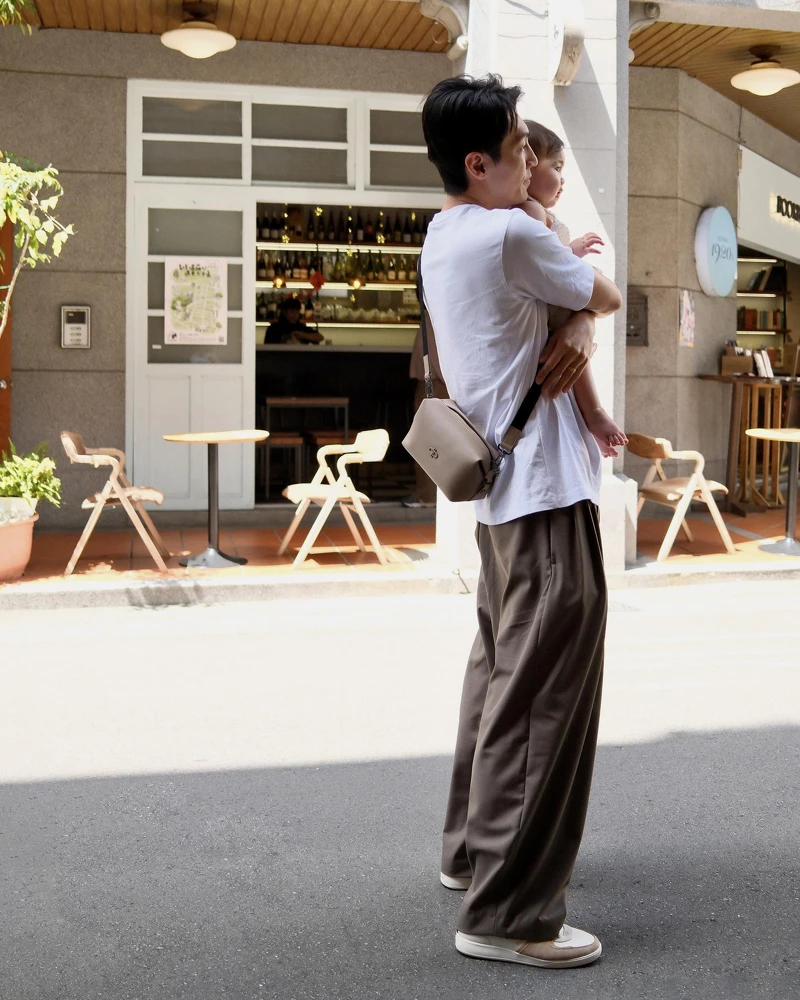 全家出遊,老公時尚品味自然也要和太太有默契呼應,更何況PEDRO的男性包款鞋履設計那麼出色有型,在打點自己夏日風格穿搭之餘,不妨也幫另一半置入些能完美匹配的迷人單品,像中川秀美就幫老公福哥挑選了Icon淺褐色單肩包與Icon Fleet運動鞋,讓白Tee與棕色機能休閒褲的穿著,可以透過米、白、褐主色調的包款與鞋履達到視覺色系上的品味平衡。