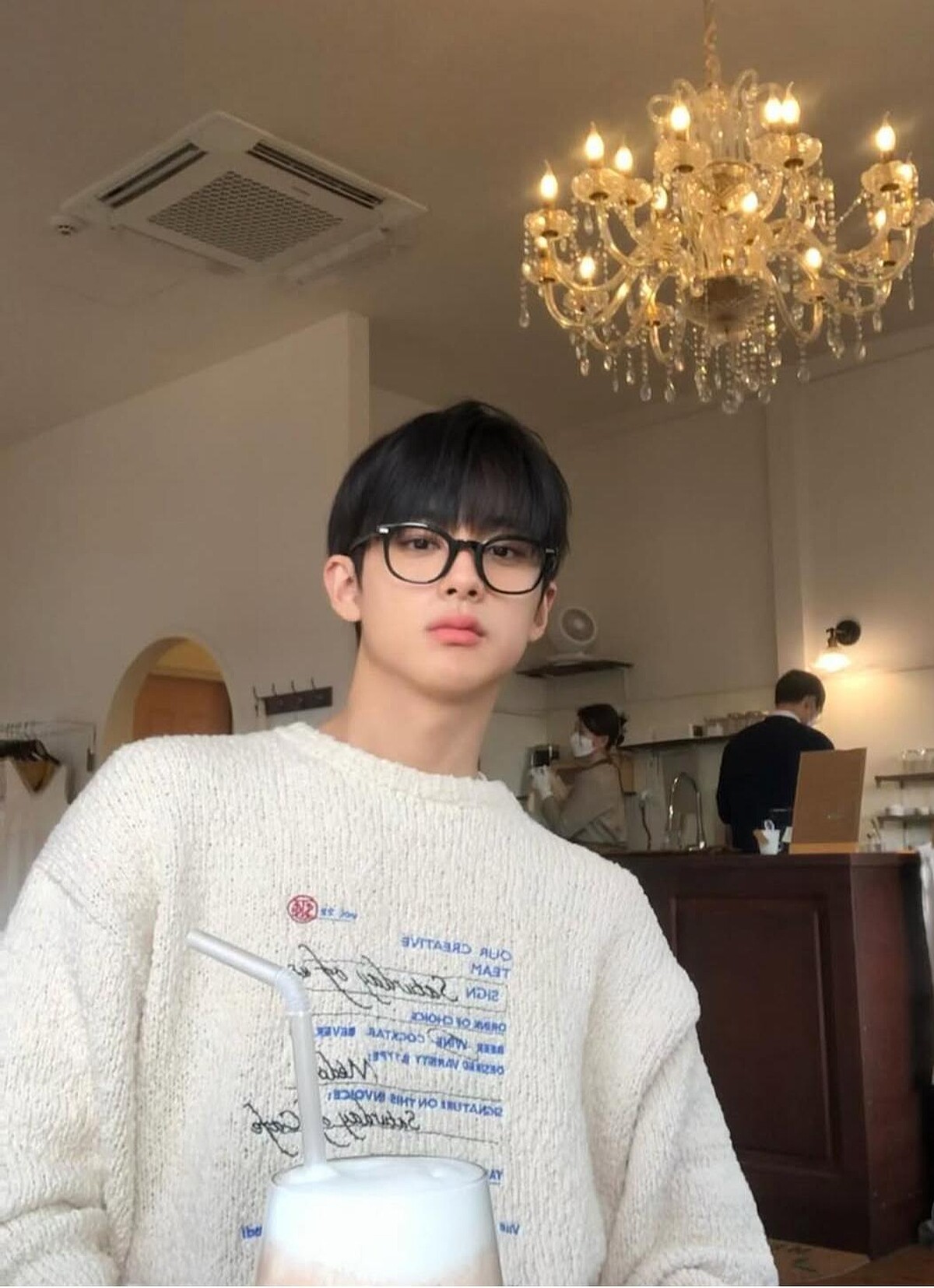出現在咖啡廳的金旻奎,放下未經整理的瀏海,隨性穿上一件針織毛衣,便營造出一種溫暖男友感,黑框眼鏡的加持下,則更顯得知性斯文。