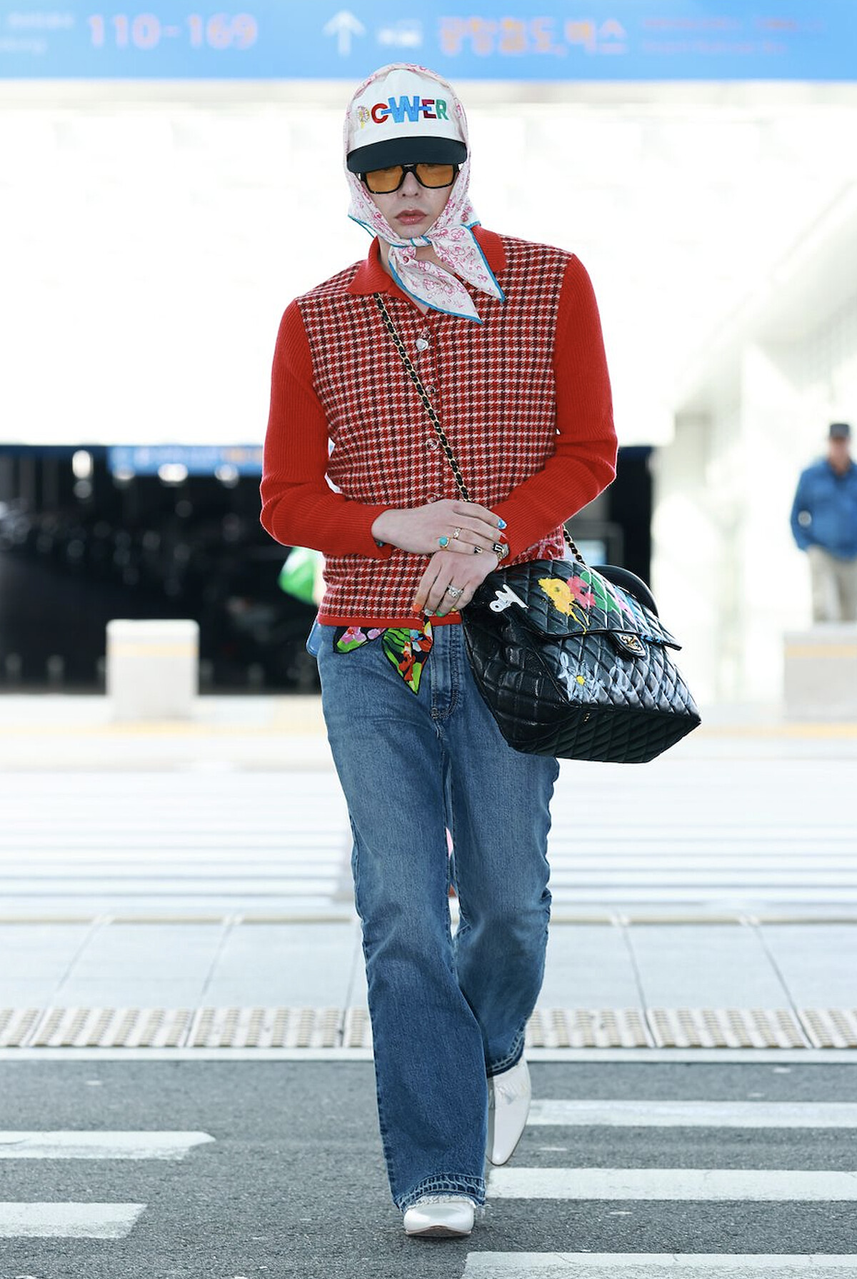去年底帶著新歌〈POWER〉強勢回歸的韓國流行天王GD,準備出發香港大秀前,被捕抓到的機場穿搭立刻引起模仿潮流——他身穿Chanel Coco Neigh系列的紅色千鳥格紋斜紋軟呢外套搭配牛仔褲,但頭上的POWER棒球帽,搭配2023 Métiers d’art工坊系列邀請卡中的限量絲巾,迅速帶動帽子搭配絲巾穿搭的風潮,展現叛逆與精緻在同一頻率共振的精彩魅力。