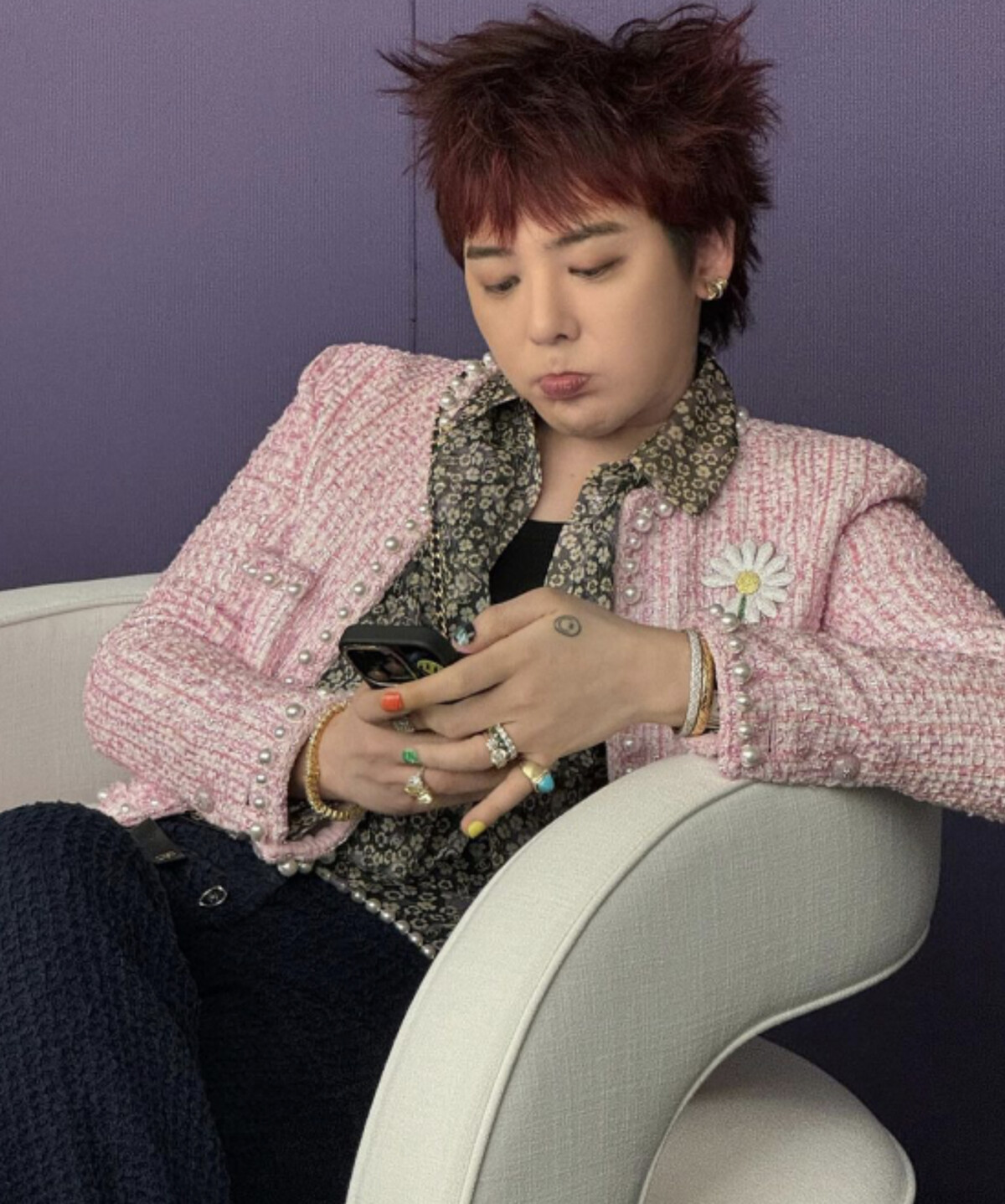 2024年11月5日,GD受邀出席位於香港的Chanel渡假系列大秀發佈會,他以粉嫩珍珠針織外套配碎花襯衫亮相,左胸的小雛菊胸針成為GD造型的情感密碼,也受到粉絲追捧愛戴。