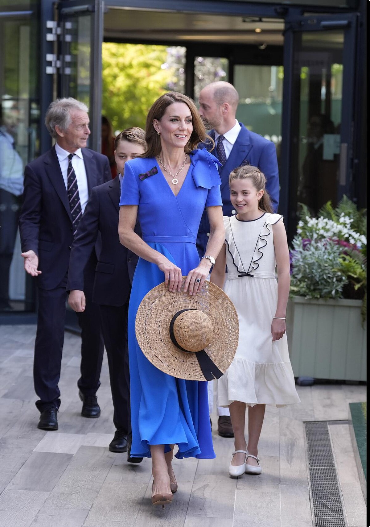 男單決賽上凱特王妃、王儲威廉、喬治王子與夏綠蒂公主全都到場,凱特王妃的寶藍色Roksanda洋裝亮麗優雅,她就是每一屆溫網頒獎台上的最美焦點!夏綠蒂公主也用心打扮,一身白色花邊洋裝為Givenchy創意總監Sarah Burton的訂製款,還有Pandora手鏈的搭配,讓人不禁感嘆夏綠蒂公主長大了!