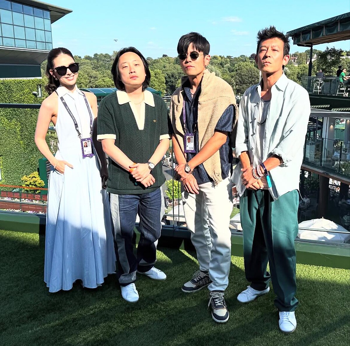 周杰倫與昆凌與好友們,包括陳冠希、脫口秀演員歐陽萬成Jimmy O. Yang……日前一同現身溫網觀眾席。周董與昆凌的造型裡洋溢著不失禮節的度假氛圍,尤其削肩洋裝設計特別凸顯昆凌的氣質。