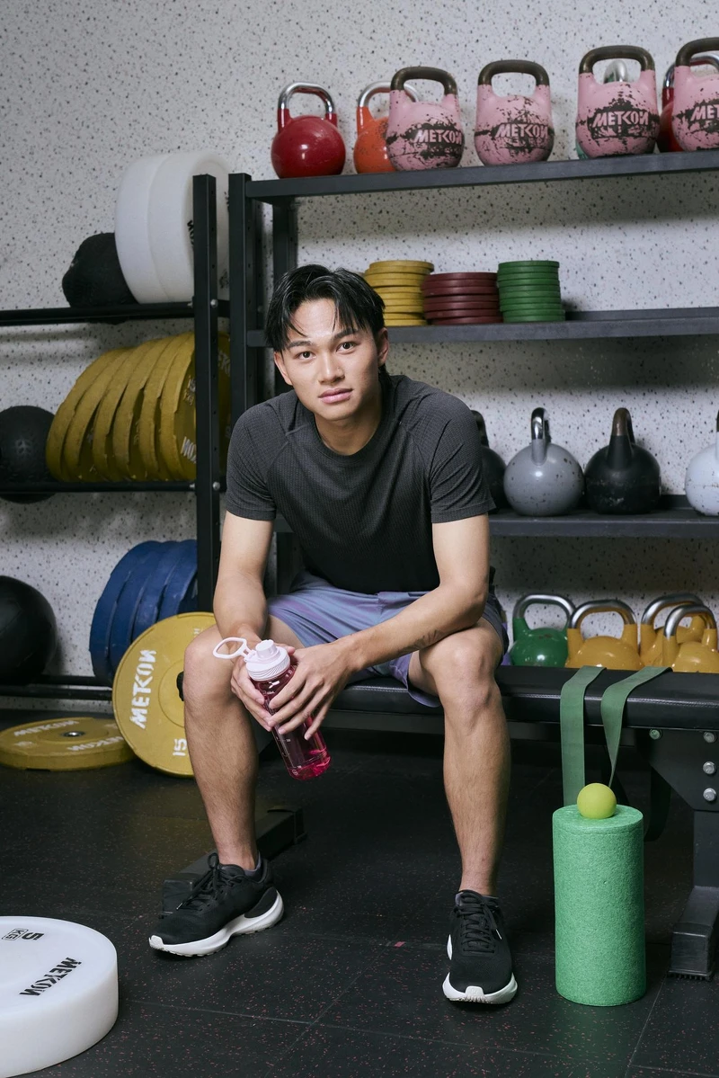 他透露,平常穿搭以黑、白、灰等簡約色系為主,但這次穿上 Pace Breaker 無內襯短褲(虹彩設計),反而覺得低調又有質感,笑言這是一次「突破自己穿搭界限」的嘗試!