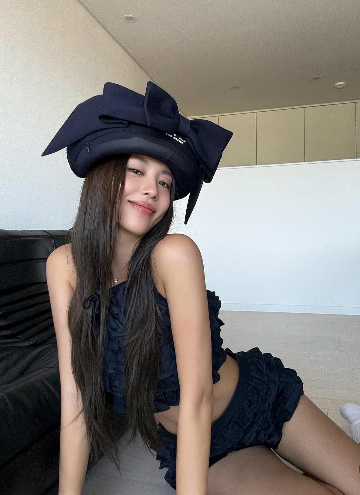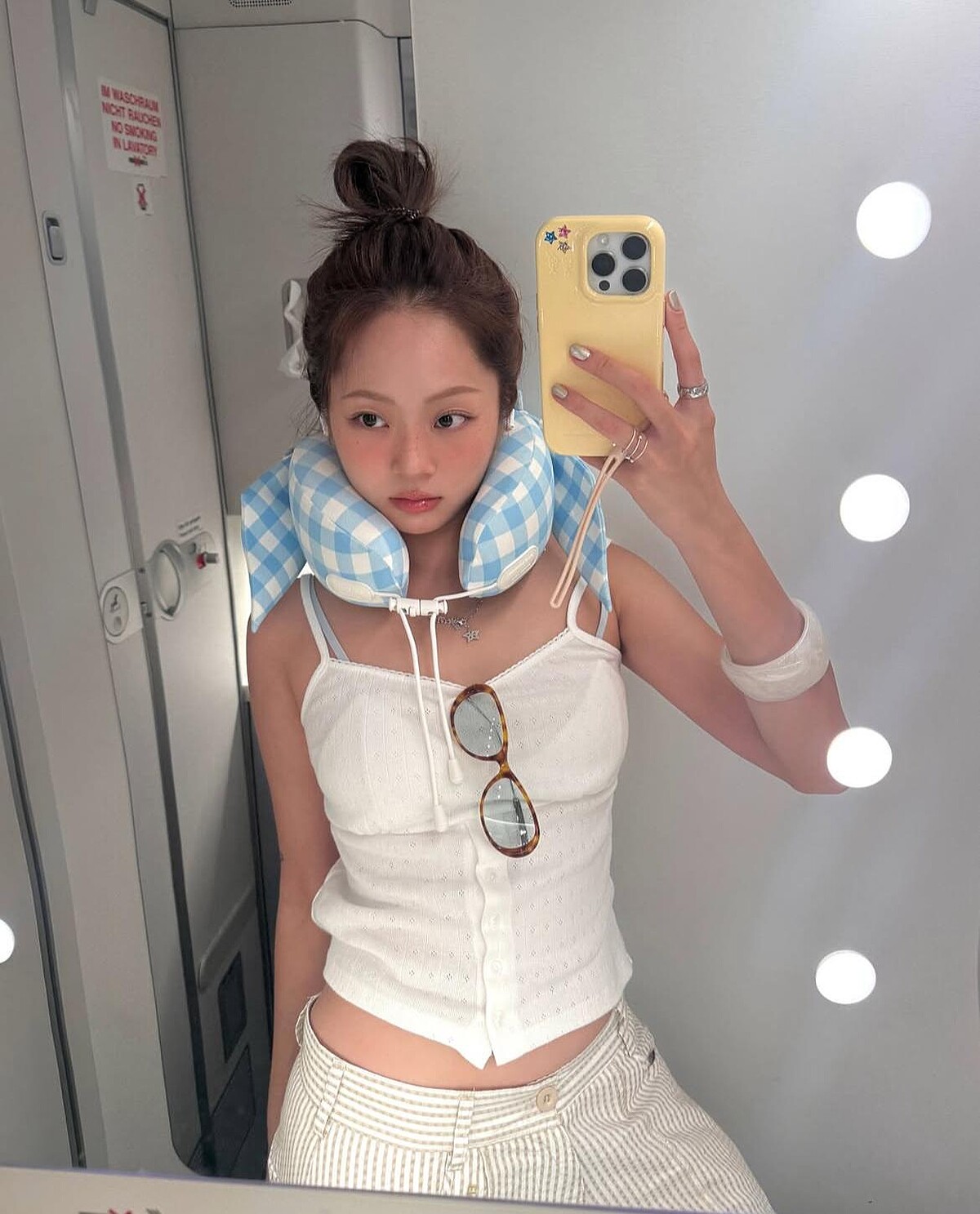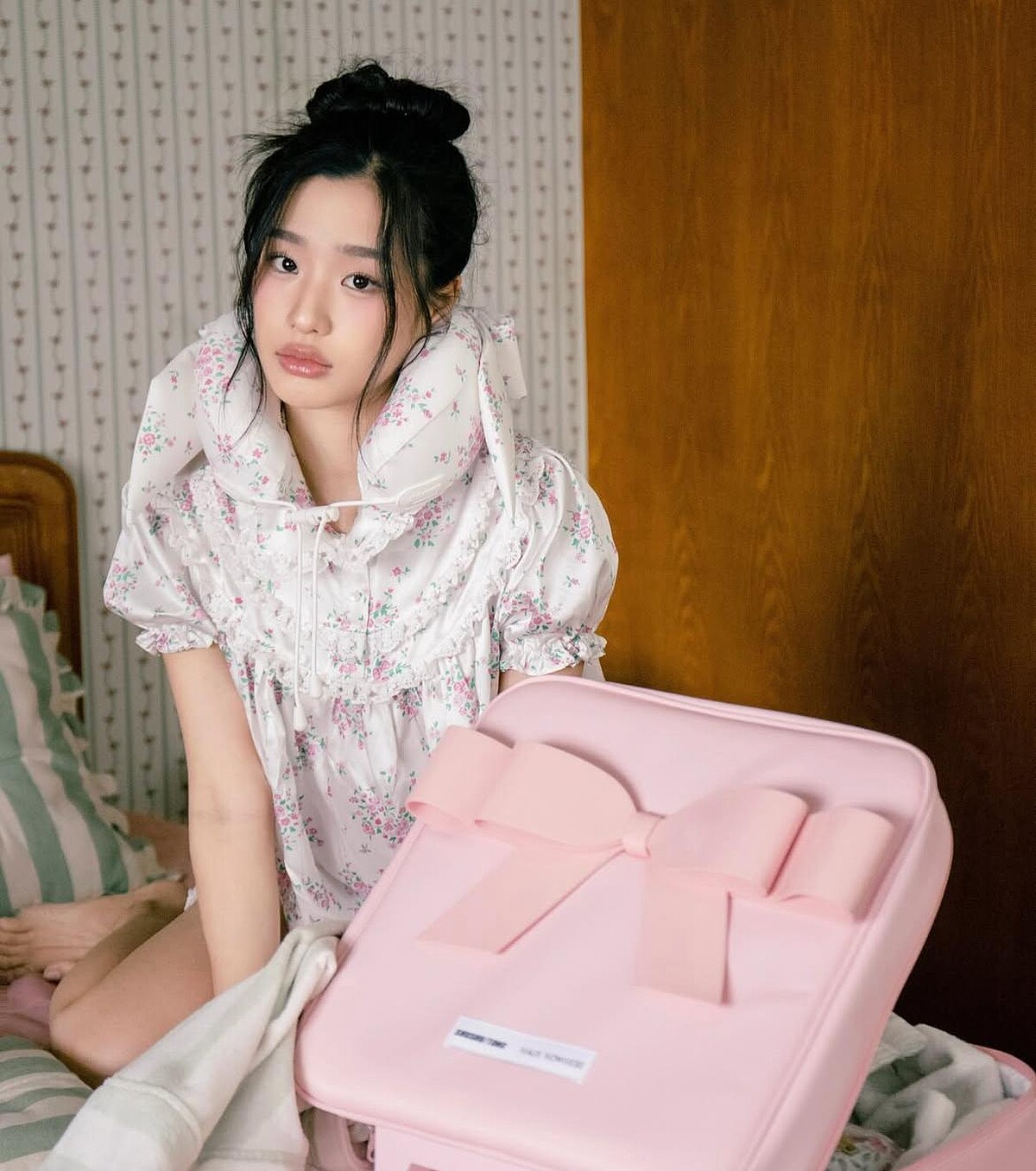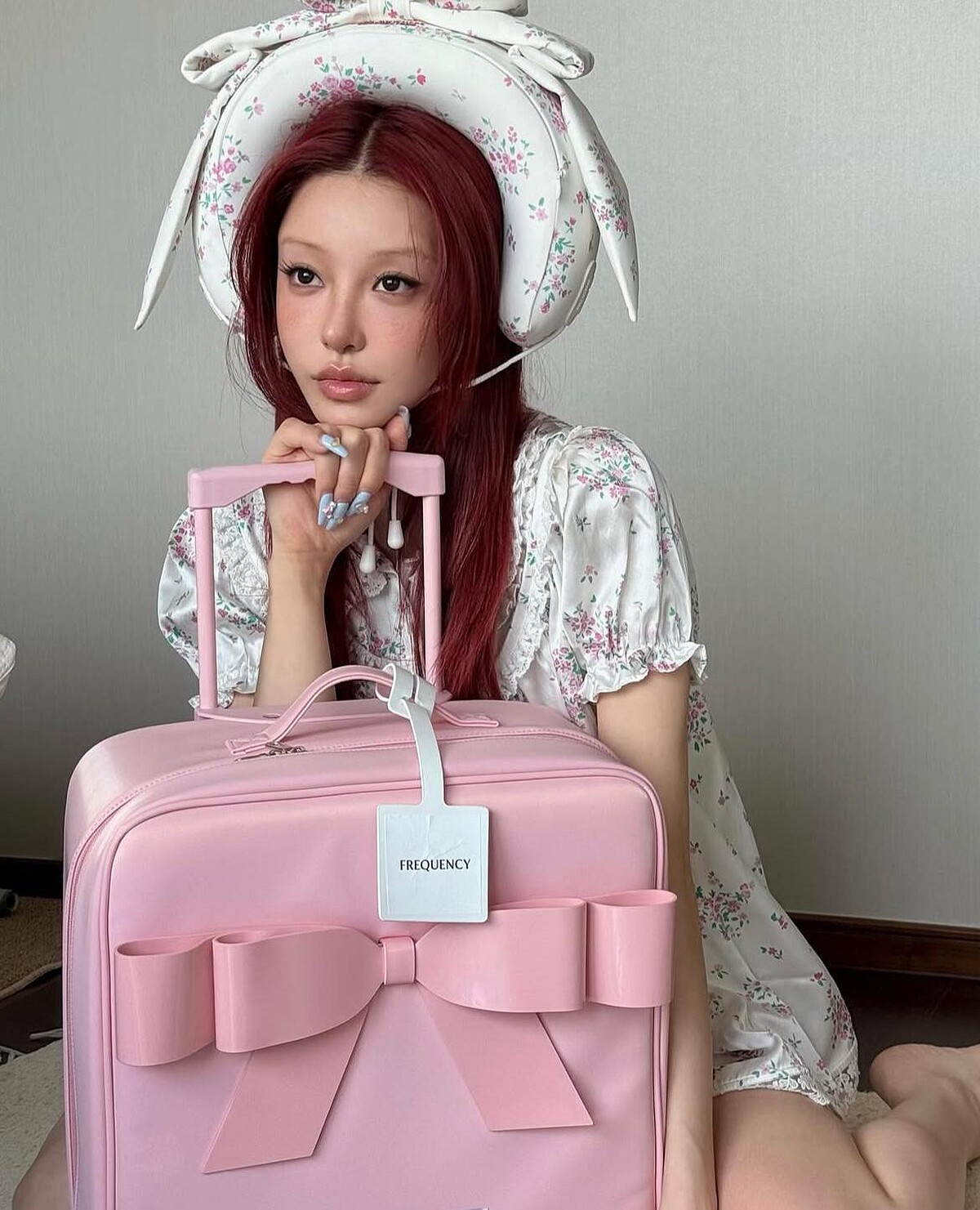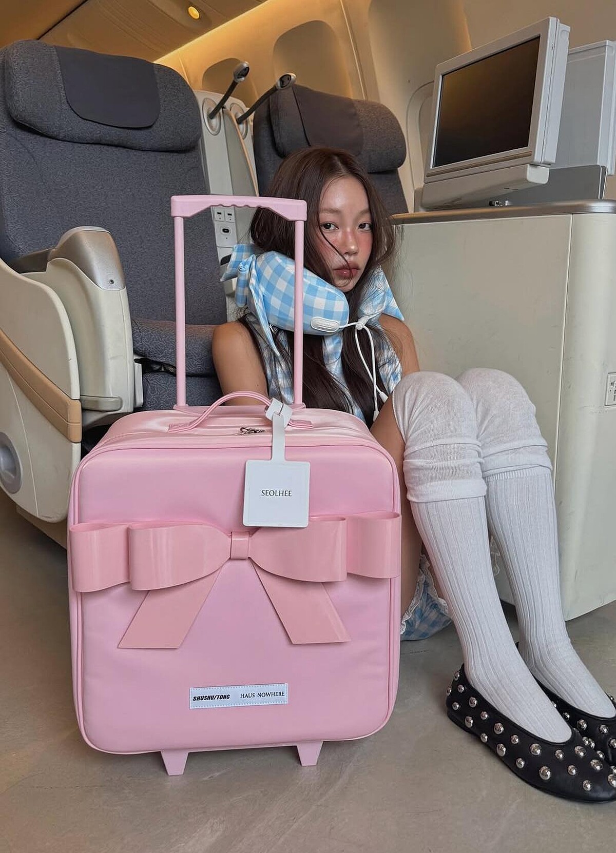 而與睡衣搭配的「U形頸枕」更是重頭戲!大型蝴蝶結裝飾頸枕,既簡潔又大膽的重申焦點元素,像寧寧這樣頂在頭上,便成了上相的時髦帽飾。