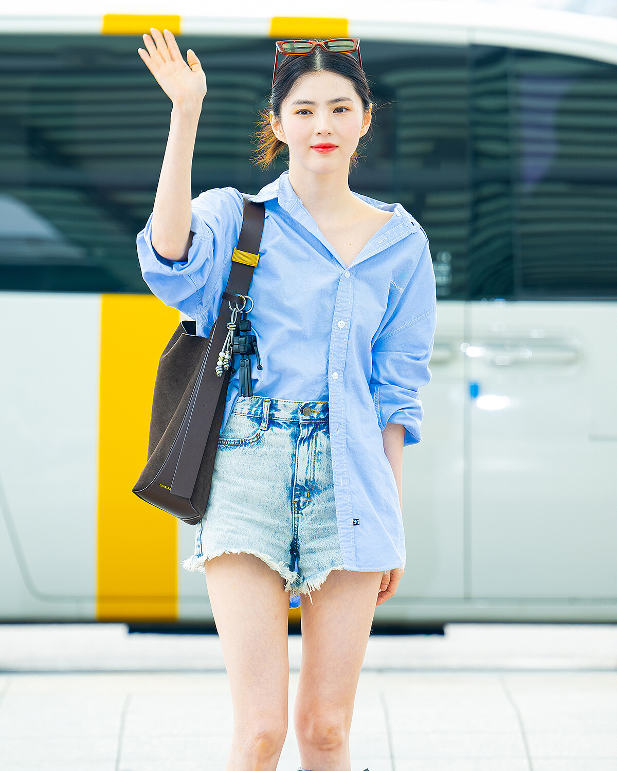 小CK代言人韓韶禧現身機場,準備啟程前往台北參加粉絲巡迴見面會 Xohee Loved Ones,她身穿 thisisneverthat 藍色襯衫、搭配牛仔短褲,輕鬆又不失造型感,搭配來自 aremile 的紅色墨鏡更為整體造型注入夏日亮點!