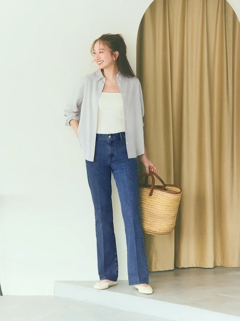 喜歡復古風格的朋友不要錯過!早秋系列中的生力軍喇叭牛仔褲正式加入,褲型結合西裝中線壓摺與斜口袋設計,腰臀至大腿俐落合身,膝下延伸優雅小喇叭曲線,不僅拉長腿部比例,正式場合也很適合穿搭。