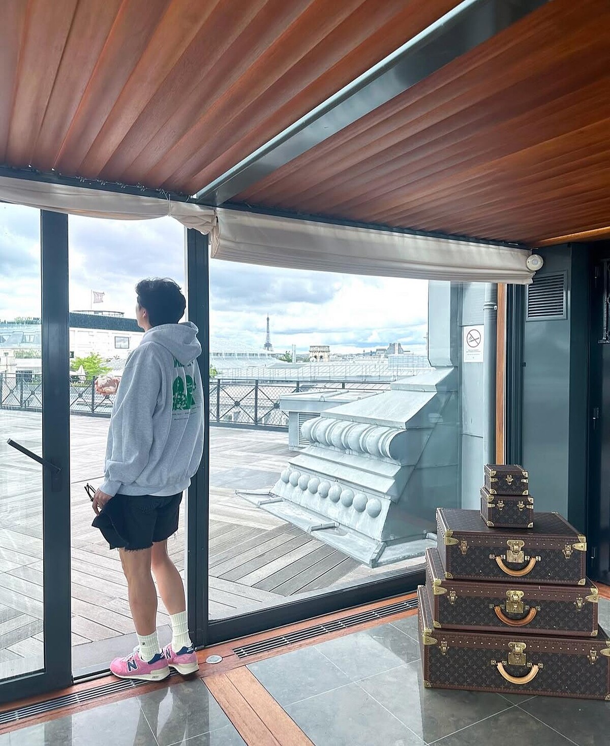 2020年Aimé Leon Dore與New Balance以五年推出一次的鞋王型號1300打造聯名系列,當時帶來了森林綠色與粉紅配色,搭配仿舊的奶油黃鞋底、鞋舌,孔劉收藏的款式正是此款的粉色!