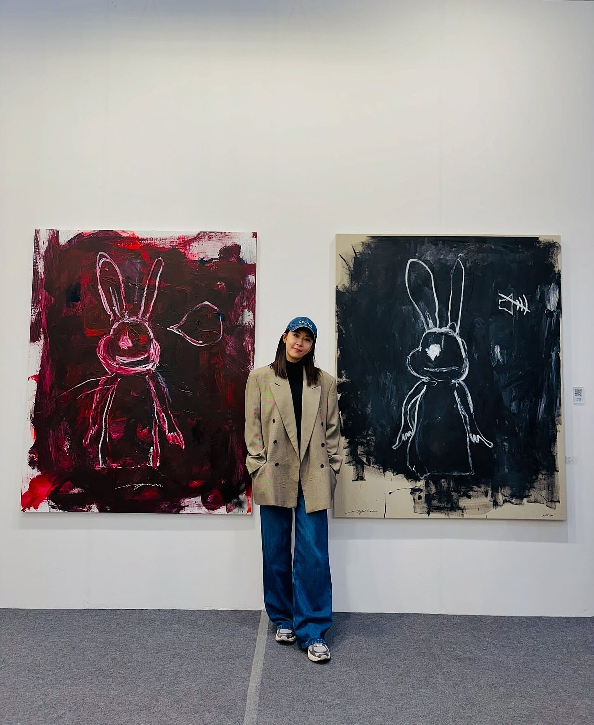 河智苑在演藝工作之外,投入繪畫藝術創作、舉辦展覽,並成立藝術品牌Art Sapce Polarpo畫廊,去年底她還創立了個人美妝保養品牌POUCH24,老闆這麼凍齡漂亮,就是最好的廣告招牌!而正是為了拍攝POUCH24形象,河智苑以「白背心+牛仔褲」造型現身聖水洞,用最基礎的穿搭襯托她波亮的肌膚,並善用特殊剪裁提升高級質感,完全看不出來已經47歲。