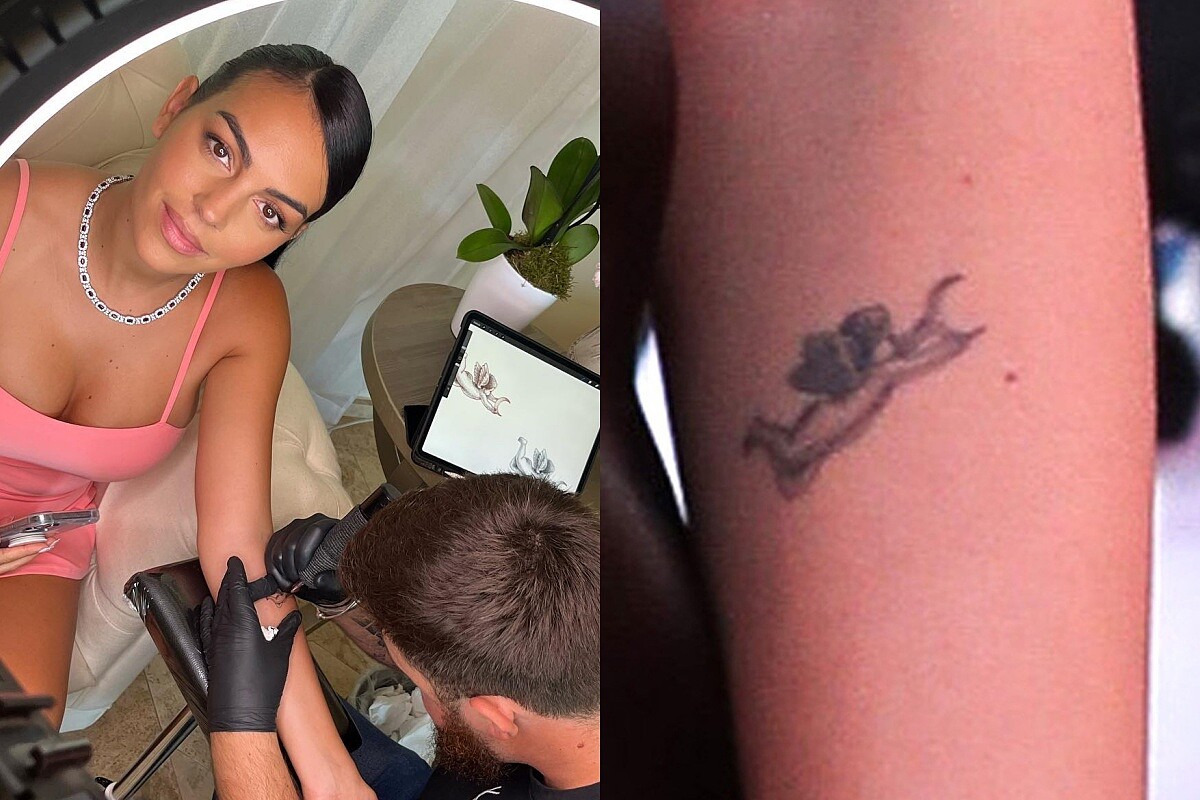 喬治娜左手前臂靠近手腕的地方,有一個以手寫字體呈現的「C♡G」微刺青,這個刺青代表著他與C羅之間的愛情連結,也代表著兩人從2016年至今長達8年的戀愛過程。