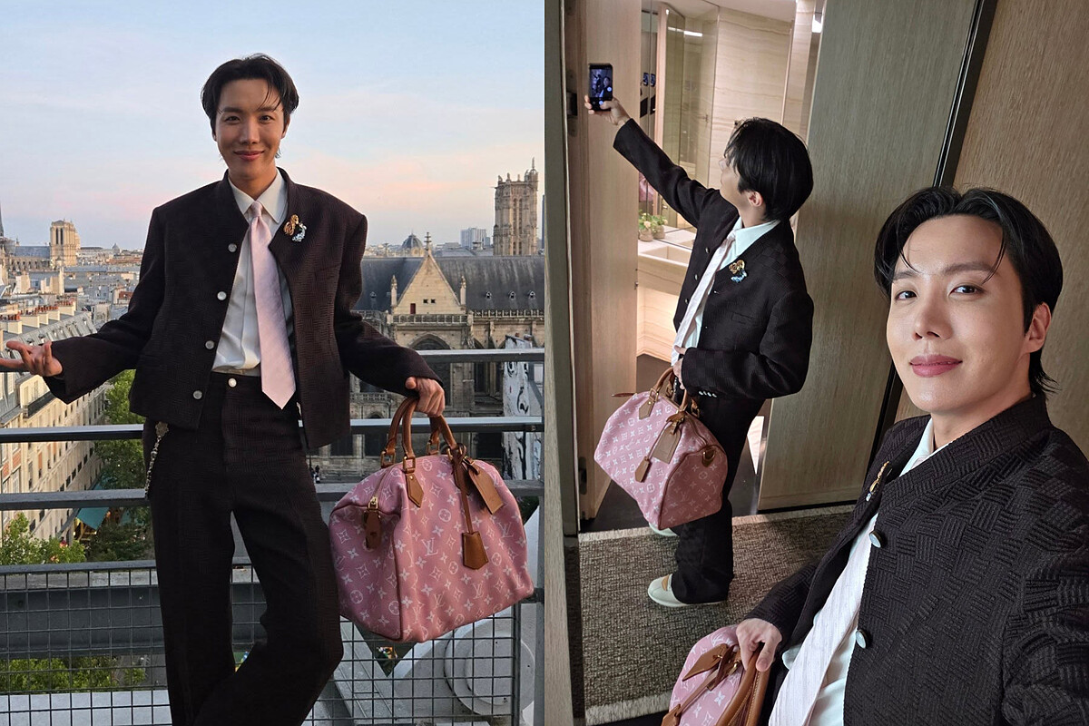 Louis Vuitton經典的Speedy系列不管經過多少年,總是能玩出不同吸引人的變化。j-hope在今年大秀現場搶先亮相的P9 Bandoulière 30行李袋款式以糖果粉色展現不同於基礎色的帥氣態度,更因為帶有份量感的包身而自帶鬆弛氣場,男生也能利用粉色打造迷人造型。