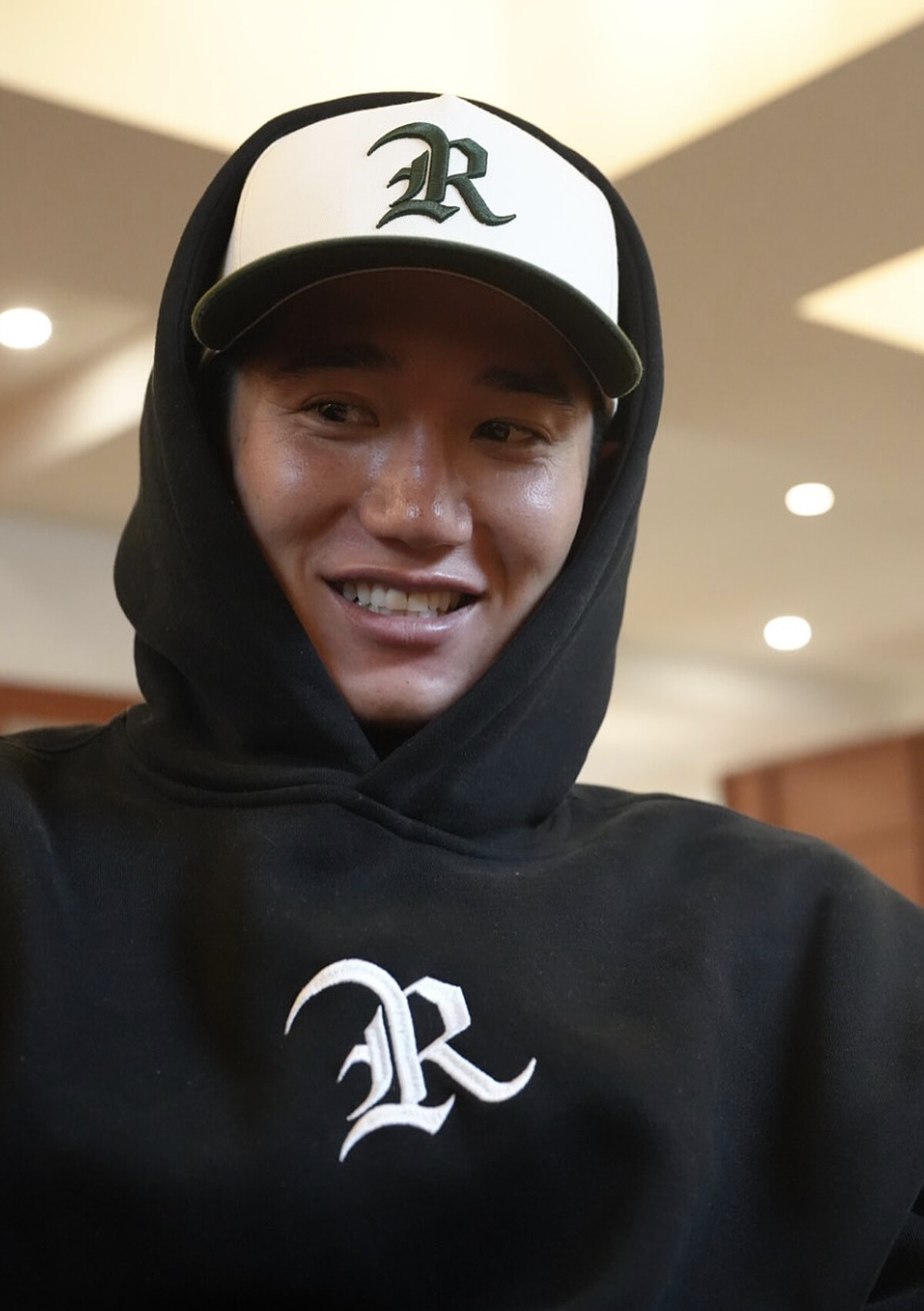 訓練前的全黑運動套裝,搭配棒球帽或毛帽,既展現了他運動員的機能需求,也在簡潔線條中突顯好身材。