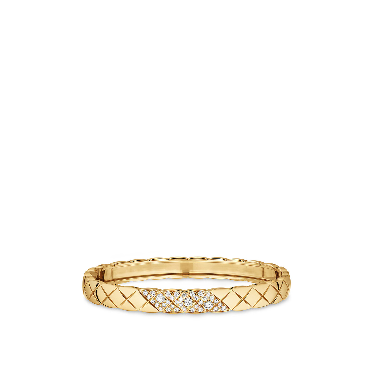 18K 黃金菱格紋圖騰鑲嵌鑽石。
