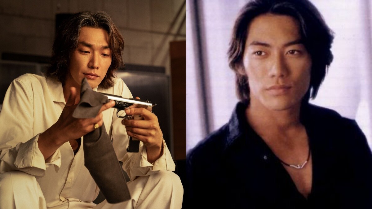 金英光飾演的反派軍火商「文百」,在劇中帶點凌亂不羈的微捲長髮,以及一身的小麥肌,意外與日本90年代男星反町隆史非常神似,那時中長髮型幾乎是日系帥哥的代名詞,像是木村拓哉在《長假》中的中分微捲髮,在當時就成為無數男性的髮型,而反町隆史、竹野內豐在《海灘男孩》中也是類似髮型!