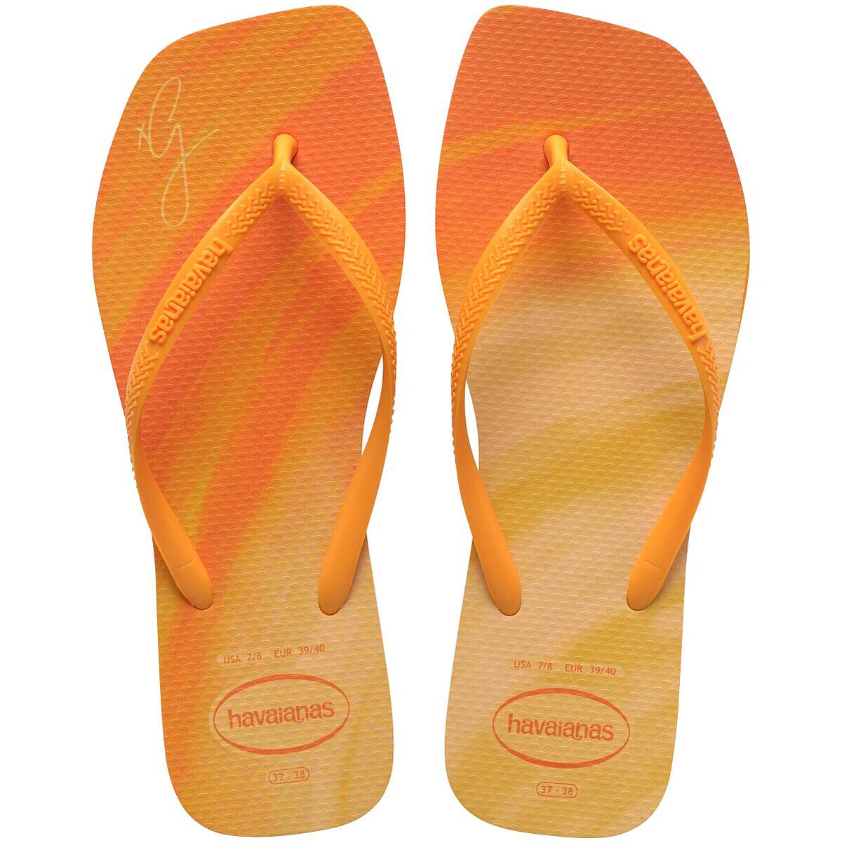巴西經典人字拖品牌 Havaianas 攜手超模 Gigi Hadid推出「Havaianas by Gigi Hadid」限量聯名膠囊系列,由Hadid親自操刀設計,其中這款加州海灘夕陽的唯美色調,正好符合今天的穿搭主題。