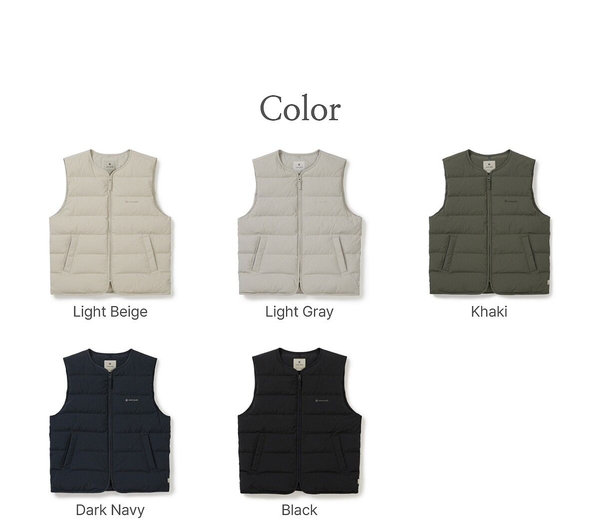 Snow Peak 長青款羽絨外套,輕盈結構適合單穿或作為內搭。 自然紋理Taslan布料,具防潑水、防風、保暖;填充 R.D.S 認證羽絨,兼顧動物福利與高效保暖。