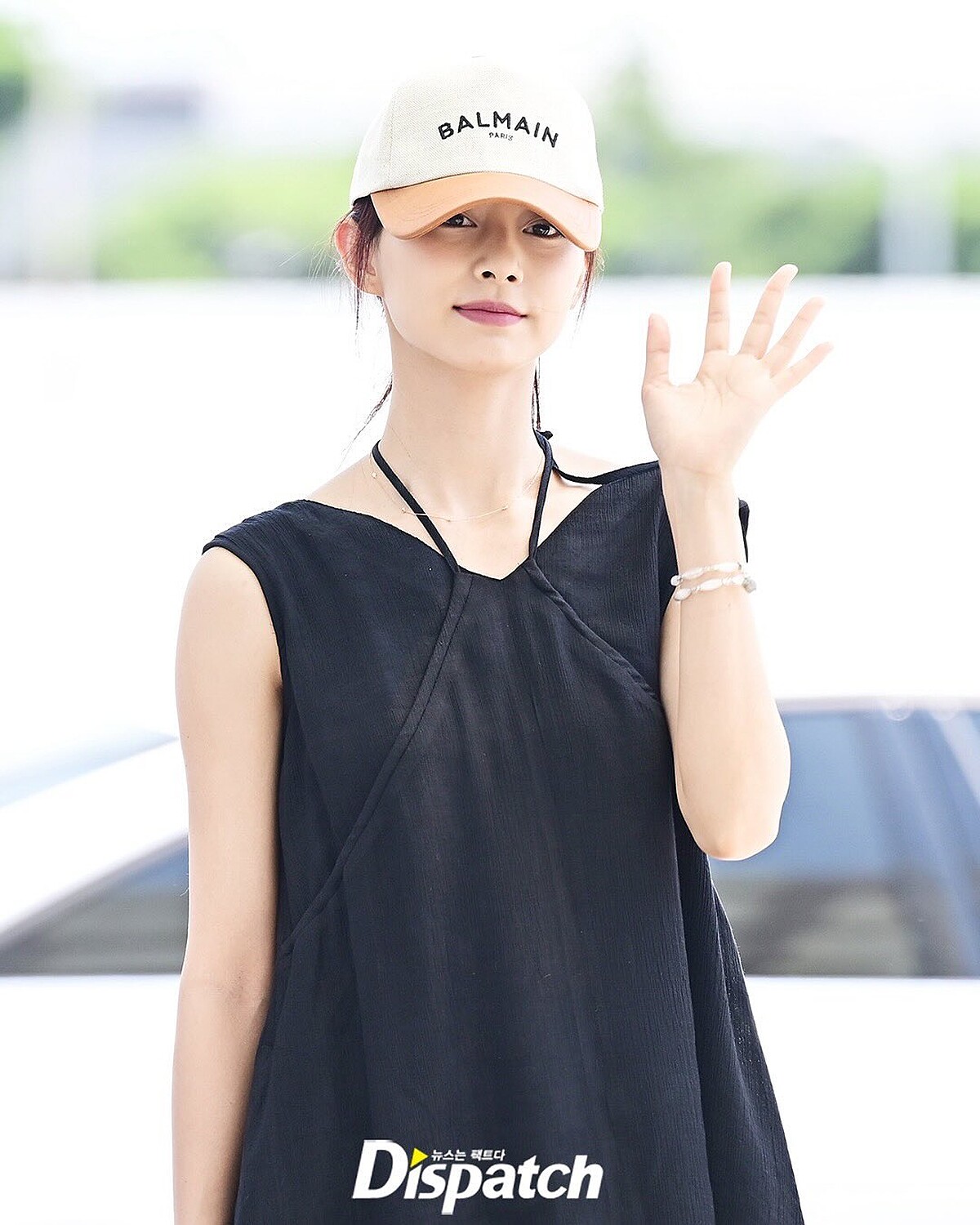 TWICE 成員周子瑜配戴 BALMAIN 拼接皮革棒球帽搭配黑色洋裝現身韓國仁川機場,自然不造作的造型風格將子瑜的好氣質完美展現~