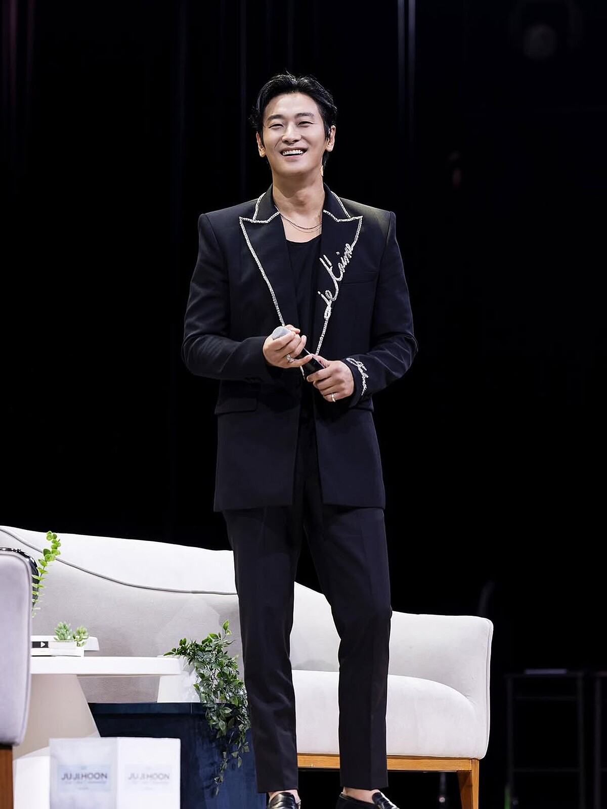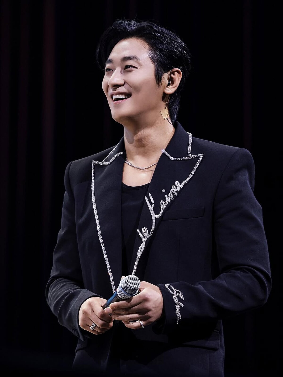 演員朱智勛身穿BALMAIN 2025春夏系列襯衫與西裝外套,出席海外粉絲見面會活動,不同於一般西裝外套的設計,他選擇的這件西裝外套在劍領上有著獨特的草寫字樣,讓原本拘謹的正裝風格多了分隨興與不羈。