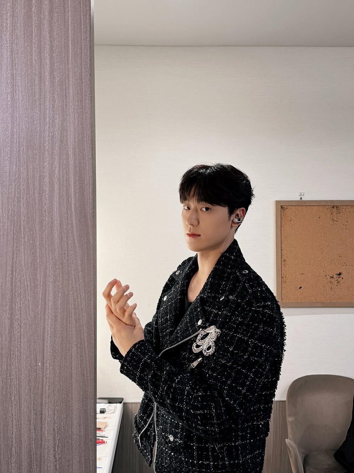 演員李到晛選擇 BALMAIN 2025春夏系列機車外套,出席海外粉絲見面會活動,他選擇的這件騎士外套不同於一般皮質面料的款式,毛呢材質為單品帶來精緻與優雅感,當他背上吉他讓整體的搖滾氣質更完整!