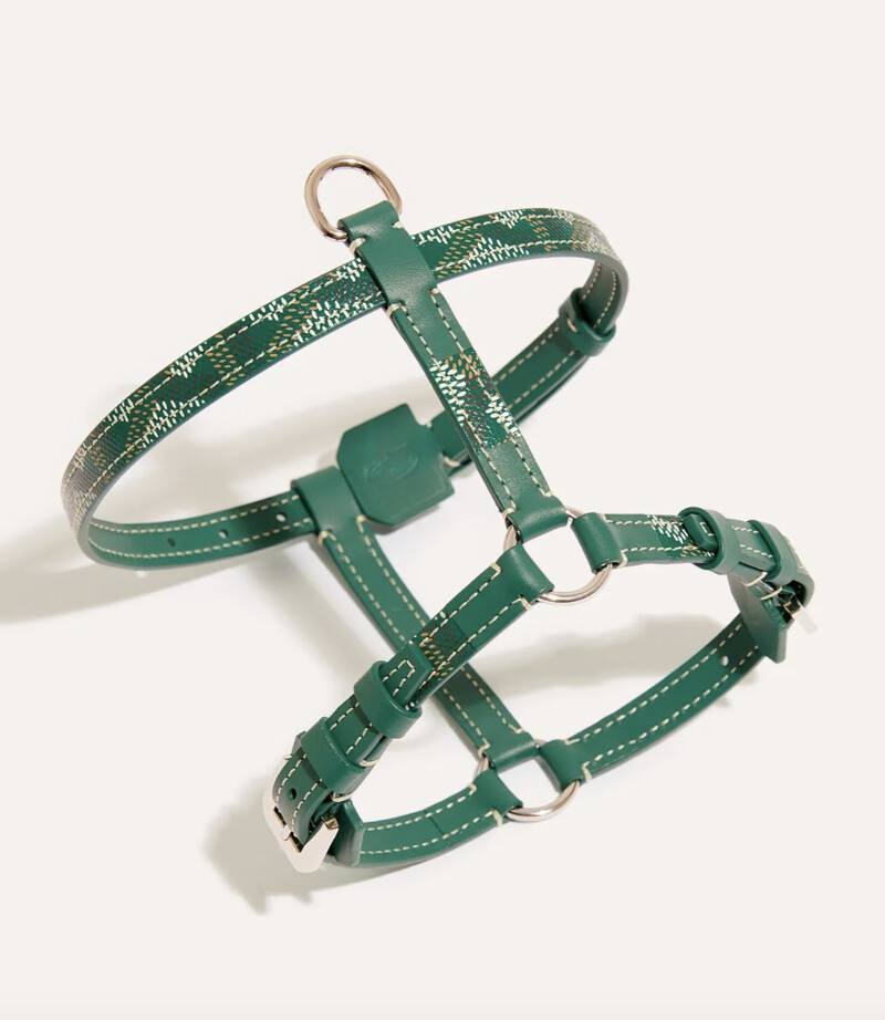 從最初的項圈、牽繩,到特別為貓咪設計的鈴鐺項圈與旅行專用寵物箱,這個系列隨著時代演變而不斷更新。它承襲了 Goyard 一貫的精緻工藝:以經典 Goyardine 帆布、頂級皮革與金屬配件組成,並提供專屬的刻字與定製服務。這些細節不只是裝飾,而是讓飼主能在物件上烙印情感的方式。在這個浪潮之中,Goyard 的「Chic du Chien」系列顯得格外迷人。這個名字本身,就帶著一種俏皮卻不失格調的法式幽默。它不只是「為寵物設計產品」,更是把寵物視為家人的品味象徵,讓毛孩也能在日常中享受與主人一致的精緻。現在就讓我們往下看看有什麼推薦品項。