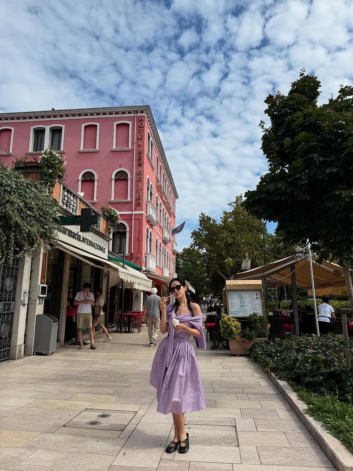 把握這次機會,孫藝珍也從育兒人生中短暫放個假,在出席影展之餘不忘在義大利街頭走走逛逛。孫藝珍這套仙女紫色造型被封爲度假穿搭模板,同一色系的背心、傘裙、小外套,簡直穿成了小少女!而腳上的可愛瑪莉珍鞋,則是來自Loewe的Pebble穆勒鞋。