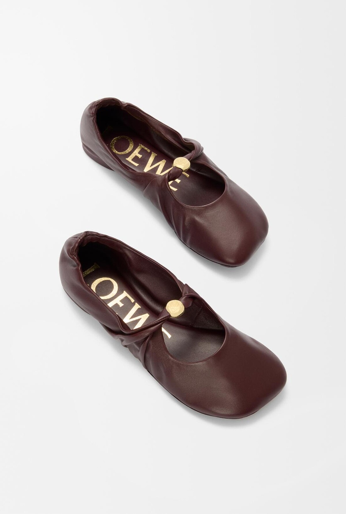 Loewe Pebble穆勒鞋採用納帕小羊皮製成,透過名稱可以知道其隸屬Loewe熱銷的水桶包型Pebble,此系列最大特色正是上方點綴的Anagram鐫刻金屬,搭配品牌標誌性的花瓣形鞋頭,以及微微小貓跟,穿起來既有個性又能修飾比例。同款亦有推出平底芭蕾舞鞋版本,包含麵團色、薄跟地紅、黑色、橡木色(駝色)、蒲公英色(鮮黃色)。