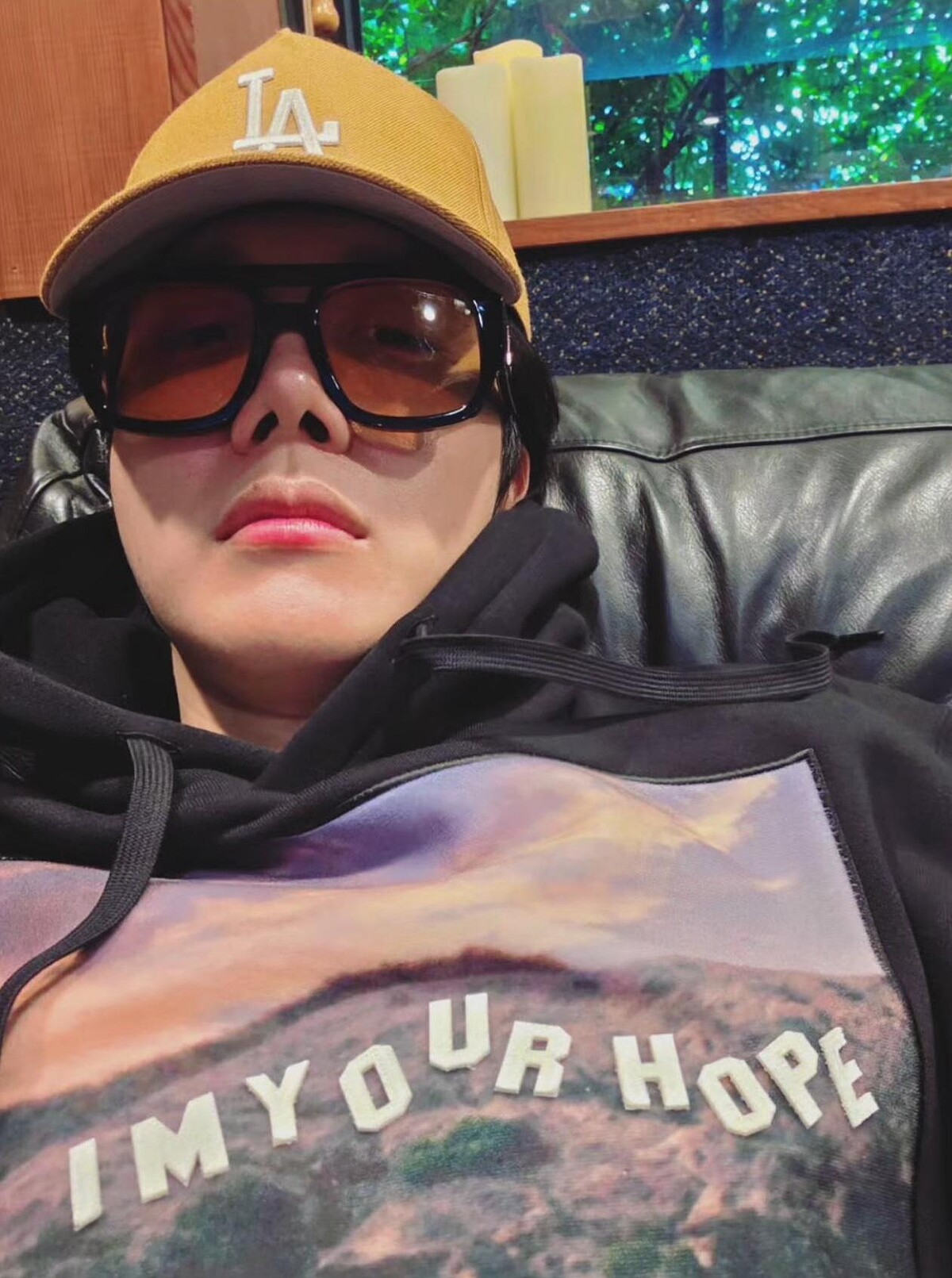 最後這套街頭風格滿點,J-Hope 上身穿 Doublet 聯名黑色帽踢,下身搭配寬鬆褲裝,整體低調卻不單調,頭戴橘黃色 Dodgers 棒球帽,再加上 Louis Vuitton 橘色 Clash 墨鏡,細節呼應形成亮點,讓整體穿搭更有活力!