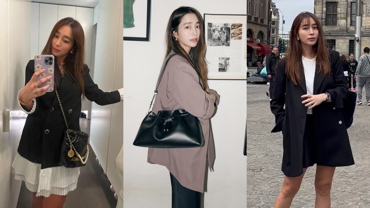 李珉廷在私下多套穿搭裡都會選擇搭配西裝外套,包括搭配西裝短褲營造休閒的造型、俐落又不失優雅的西裝式洋裝到Oversized西裝搭配都有,透過西裝外套獨有的挺闊線條,整體看起來精緻又不失氣場。