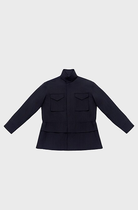 產品細節:尼龍緊身綠洲夾克,直筒剪裁,下擺有抽繩,正面拉鍊開合,有3個帶蓋貼袋,全襯裡,配有可捲起的連帽衫。