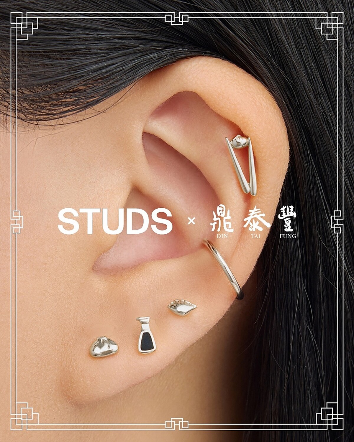 讓我們先來快速了解一下這次能與美國鼎泰豐合作的品牌。來自紐約的專業穿孔店Studs成立於2019 年,以「耳環即風格語言」為理念,主打多樣化且平易近人的耳飾設計以及專業的穿孔服務,更主打像佈置空間般打造個人化的耳洞時尚,店內不僅有各種俏皮、趣味的耳釘選擇,價格也很親民,深受年輕世代的喜愛,也是社群平台上被標註最多的穿孔飾品品牌之一。