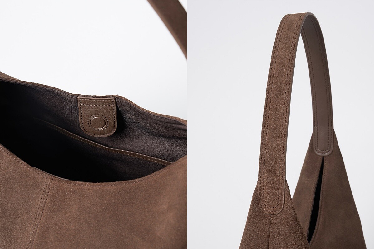 包包透過磁吸叩開合,寬版的肩背帶就算是包包有點重量,也可以舒服的背上肩膀,從容量到外型都是對日常通勤上班非常友好的選擇。同款手袋除了有麂皮款之外,還有皮革款式可以選擇。