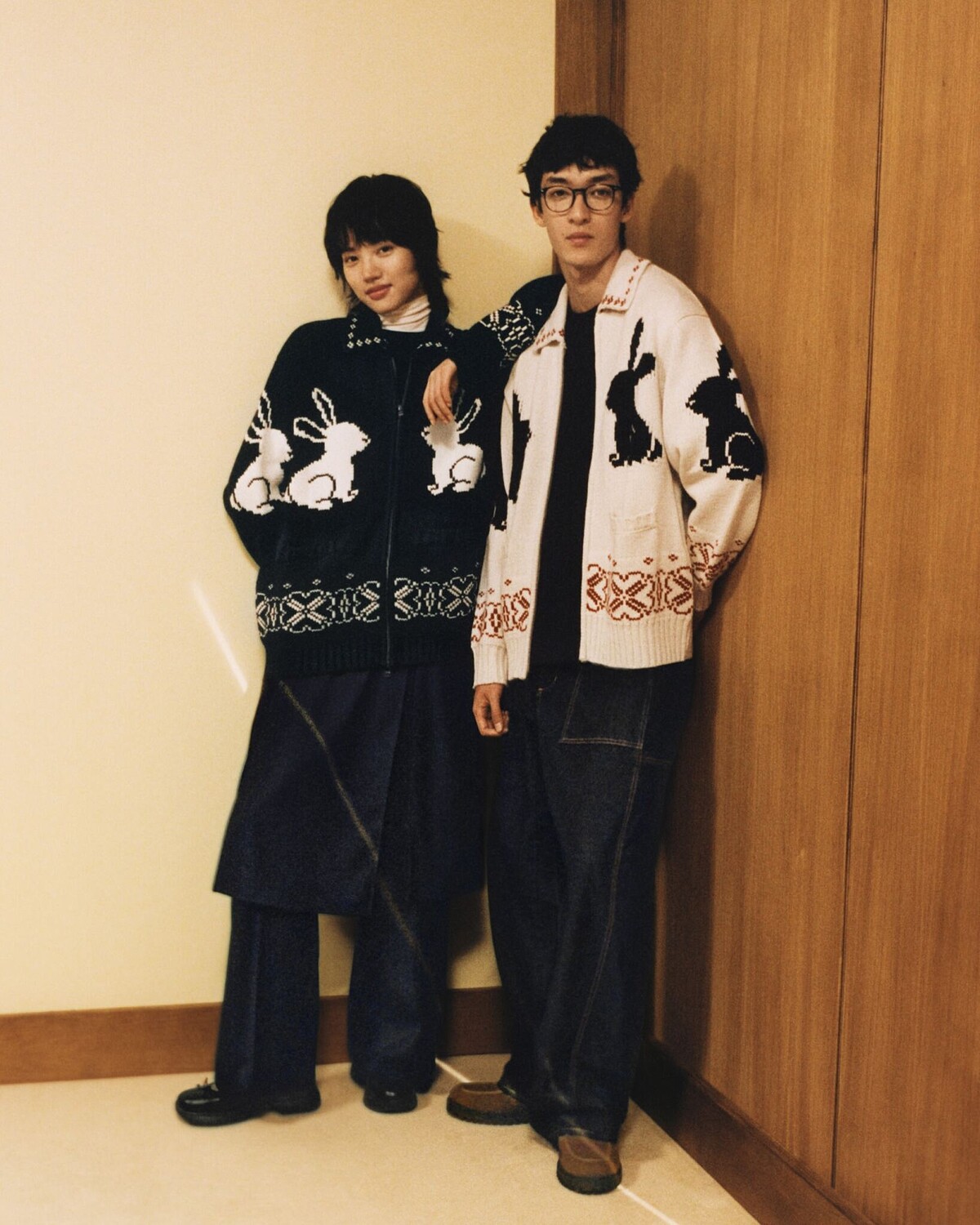 這是在rokh簡約風格裡少見的童趣圖案,本季推出一款拉鏈針織外套,上頭有像素感的兔子圖案,並有花朵圍繞衣襬、領片邊緣,厚實而柔軟,穿上即變「暖男」!且女生駕馭起來也非常好看。